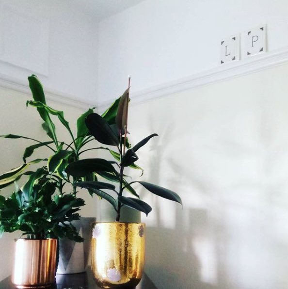 My bedroom is dual aspect, with south and west facing windows. I’m still finishing off styling this room, and am in need of some more surface space, but for the time being, I use my G-Plan dressing table to keep some clusters of plants huddled together. My ficus lyrata bambino also lives in a planter in this room, getting good light from the two directions (below).