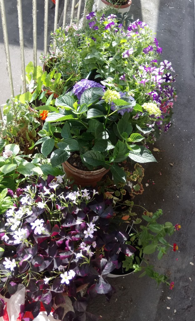 🌿 Oxalis Triangularis🌿 Zinnia (from seed) 🌿 pink hydrangea 🌿 pink geranium 🌿 sweet william 🌿 sunflowers (from seed) 🌿 trailing begonia 🌿 nasturtium (from seed) 🌿 rosemary 🌿 sage 🌿 lavender 🌿 mint 🌿 wildflowers 🌿 basil (from seed) 🌿 dill (from seed) 🌿 blue hydrangea 🌿 variegated lemon scented pelargonium 🌿 peony (from bulb) 🌿 variegated pelargonium contrast (even if it’s only a stub right now) 🌿 euonymus 🌿 cosmos 🌿