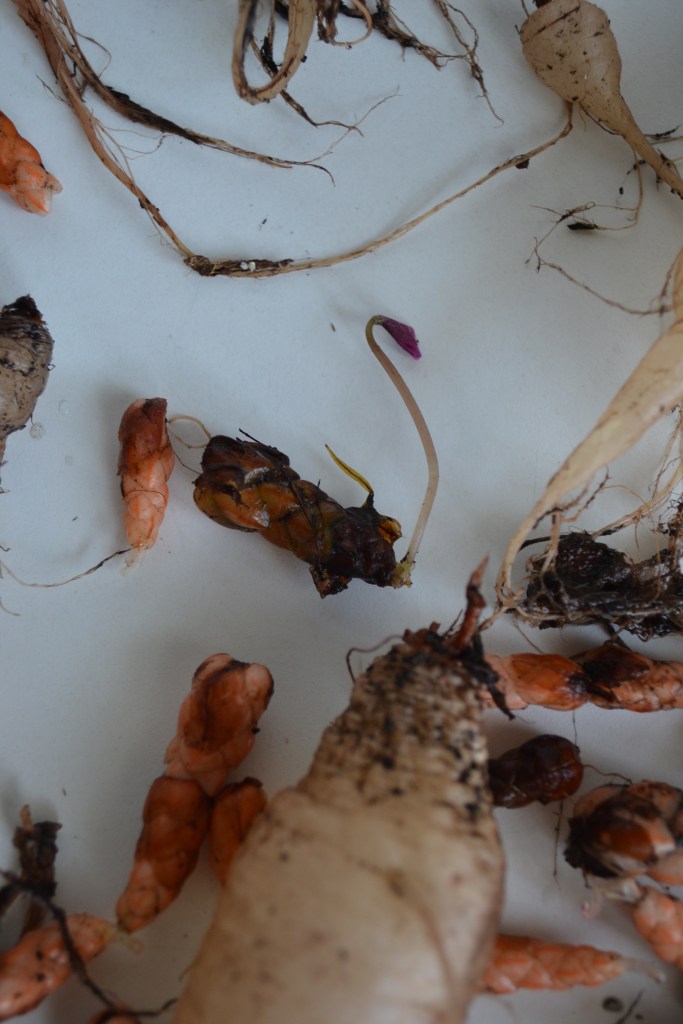 The tuberous rhizomes have developed since last year, by comparing the photos I love how we can see the growth of the taproots in particular, their distinctive shapes make it easy to identify them. I like to do this mainly because I like to be nosy and see what’s been going on under the surface of the compost since last year!