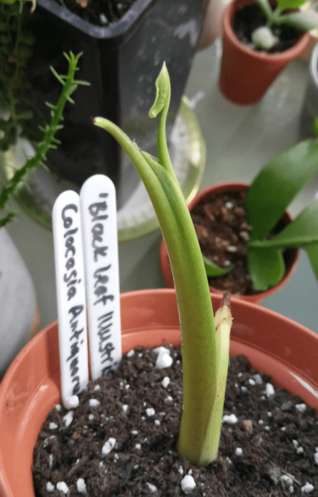 A few weeks later, I noticed some tiny shoots appearing in some of the pots; first to sprout were my colocasia antiquorum ‘black leaf’ illustris, closely followed by my zephyrantes carinata (which I received as a surprise gift for ordering so much (oops..haha).
