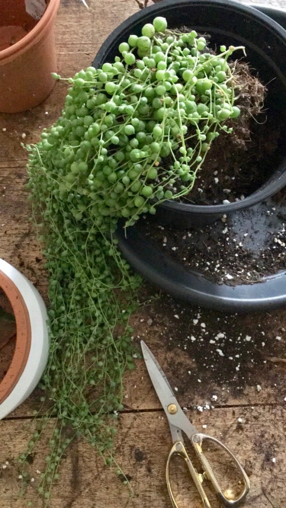 I just wanted to add that I repotted my senecio in the growing season and would recommend waiting until then to do so, unless your plant is badly suffering from being unhappily root bound. It just took me a while to put this blog post live; I did this over the Summer but didn’t want to wait until next Spring to post. I know I have readers all over the world (in 134 countries actually… I checked the other day — how cool is that?!), so it’s nice to know it’s not cold and grey everywhere! So if you have a string of pearls, I hope this has helped give you some confidence to re-pot yours if it needs it.