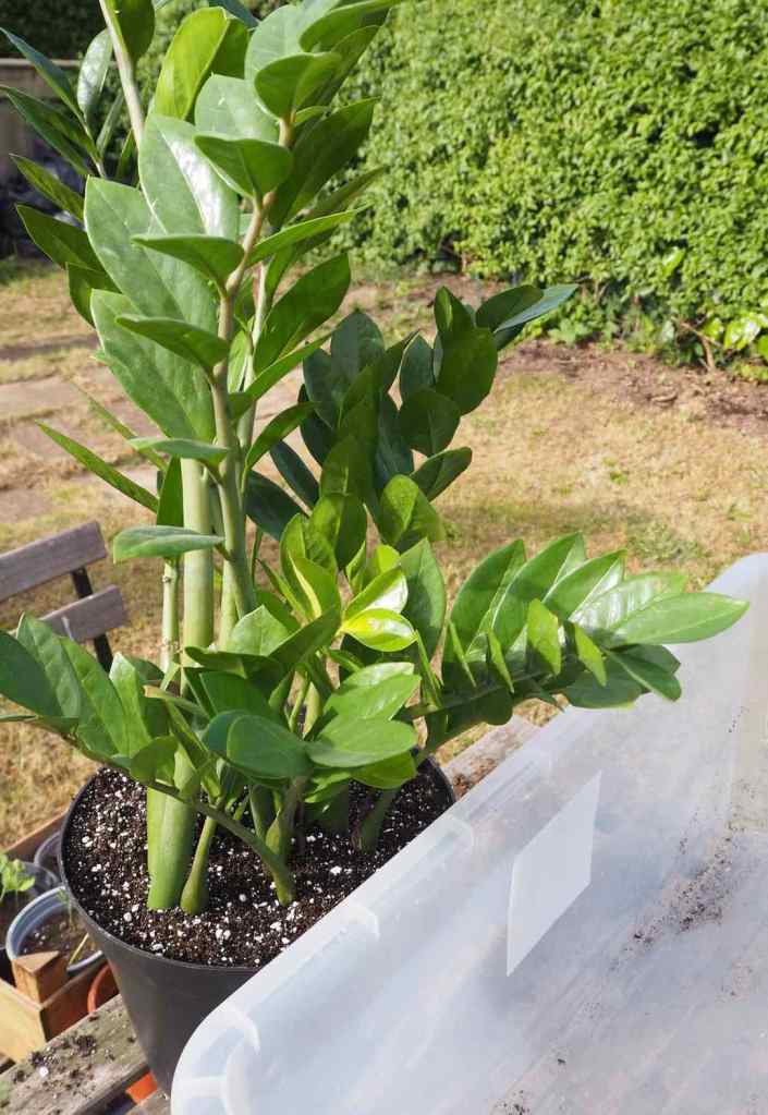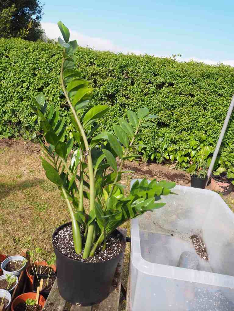 For the last in this potting session was another I had been neglecting — my zz plant! It recently threw out two little stems after moving it to a brighter position which jolted me to give it some attention. It’s important to note that whilst these plants are often sold as ‘low-light’ options, they certainly will not thrive in these conditions. They are slow growers but a brighter spot can help speed things up a little.