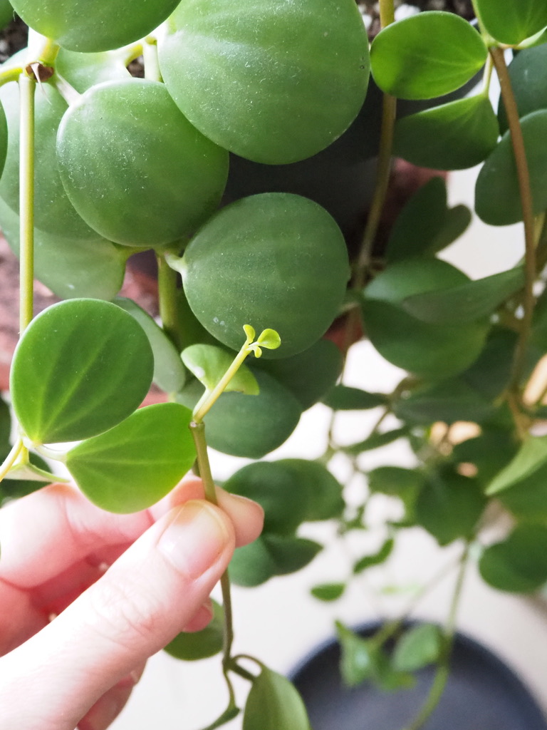 If your plant is getting a little leggy, you can take cuttings to propagate — stem cuttings root relatively easily in water; I like to wait a few days after cutting to allow the stem to callus over before putting in water. Leaf cuttings are also possible but I have not tried this myself. In this case, it’s important to ensure the petiole is intact as this is where roots will develop — that’s the little stalk that joins the disc-like leaf to the main stem.