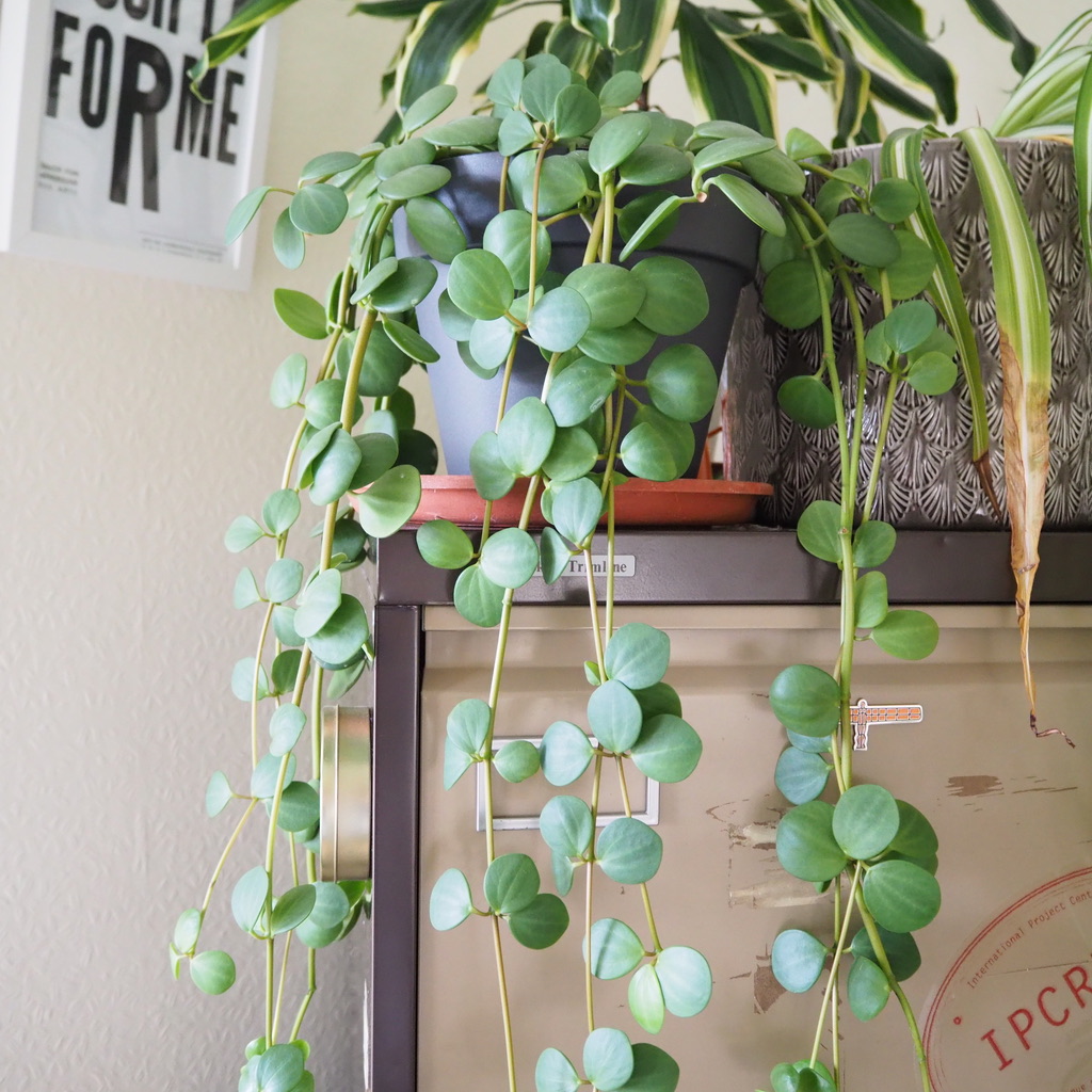 Having two plants is a great way to understand the lighting requirements of a pep hope — I often do this with multiple plants to find the most favourable growing conditions in my home for my plants. I have found through a bit of experimentation that a position close to a south or west facing window is the perfect spot. You don’t want the plant to be in direct light for too long, so around 1 metre away from the window has worked well for me in UK growing conditions. If the plant gets lots of bright light these lovely disc-like leaves can start to look pretty dull + washed-out in appearance so a bright position out of harsh, direct light is ideal. Bear in mind that these are the conditions that are personal to my current environment + are used as a guide for you to compare with your own home. It’s important to also remember that windows can be pretty different in size + if you live in a built up area, with other buildings close by, or if there are obstacles like trees outside, this all has an impact on the intensity of light.