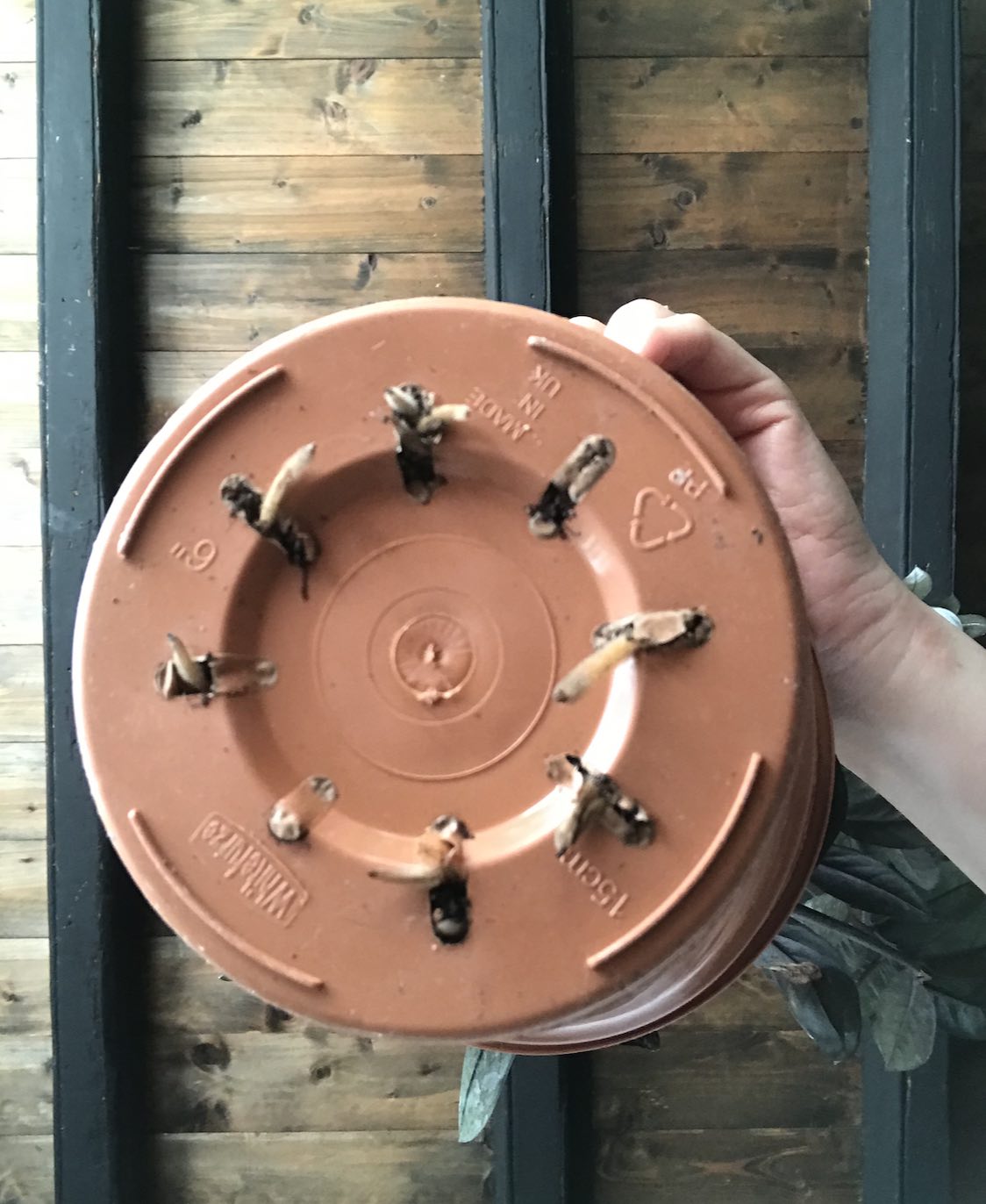 This was a long time coming… I have been rooting these cuttings for months + wanted to pot them up before it got colder here — If you want to test your patience, try rooting snake plants! They do take quite a while to get going but when they do, I’ve found they are pretty happy in water for ages (up to 12 months!). Some of these cuttings had new pups starting to grow whilst in the water — if you haven’t seen this before it can be really exciting! I’ve had quite a few questions about these on insta, so here’s the link to my blogpost about getting them to root successfully… there is a bit of a knack to it. I decided to pot these 4 leaves together for convenience (it meant I didn’t have to find 4 pots) plus I can monitor them together.