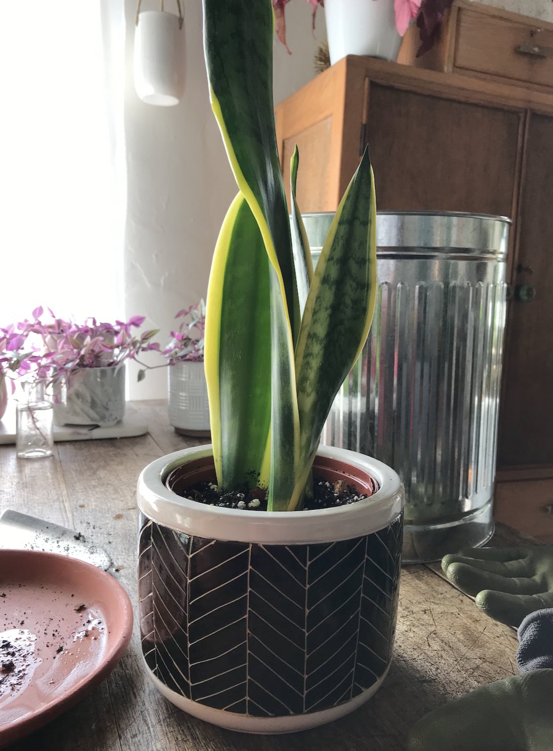 In terms of potting mix, for my snake plants, I use my houseplant potting mix that I detailed in a recent blogpost (here)+ added in some cacti+ succulent compost into the mix too.