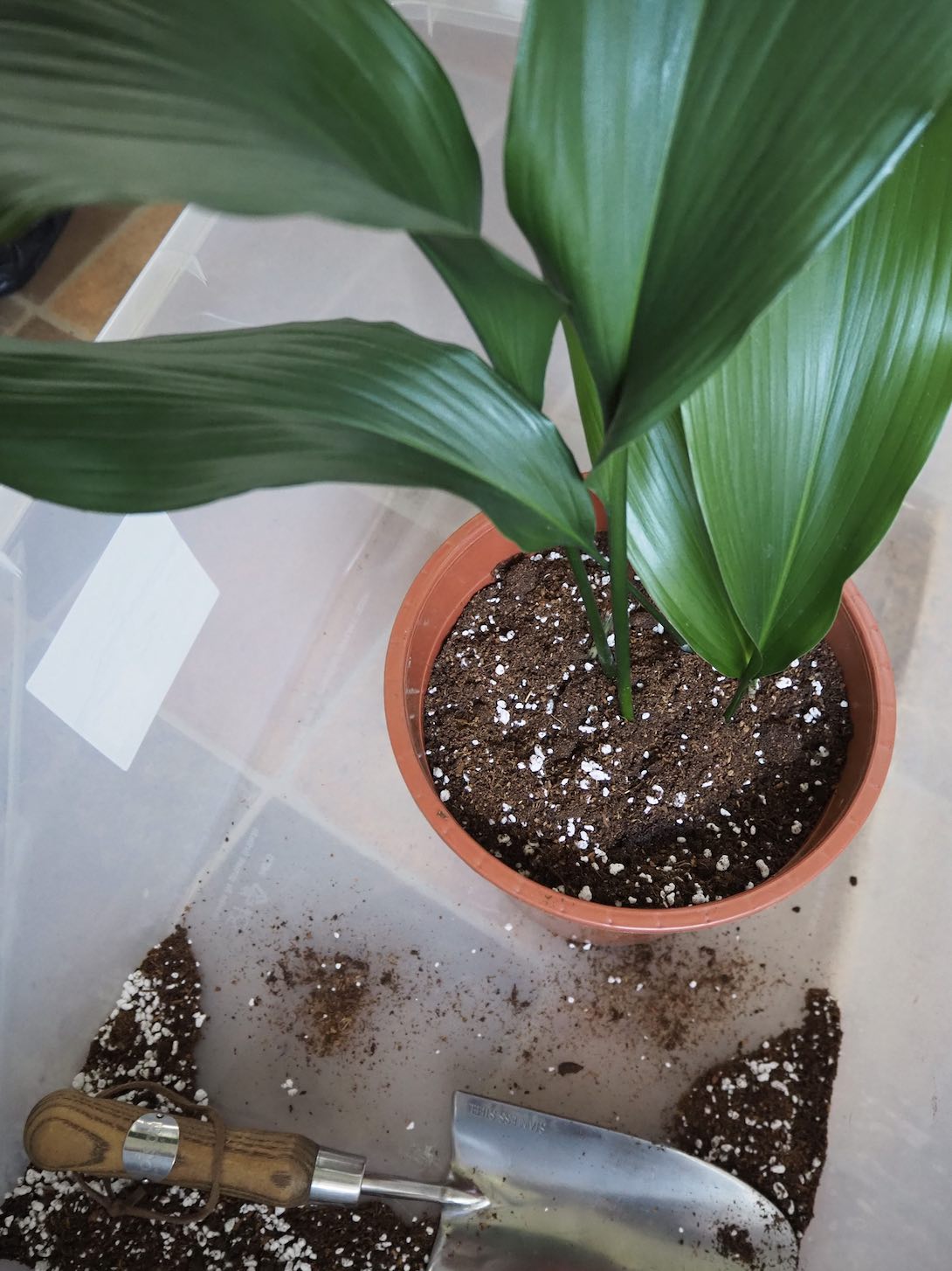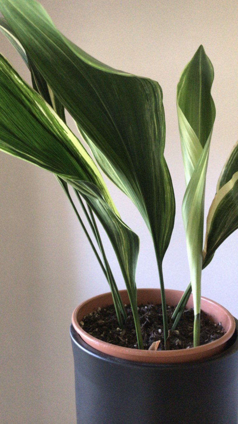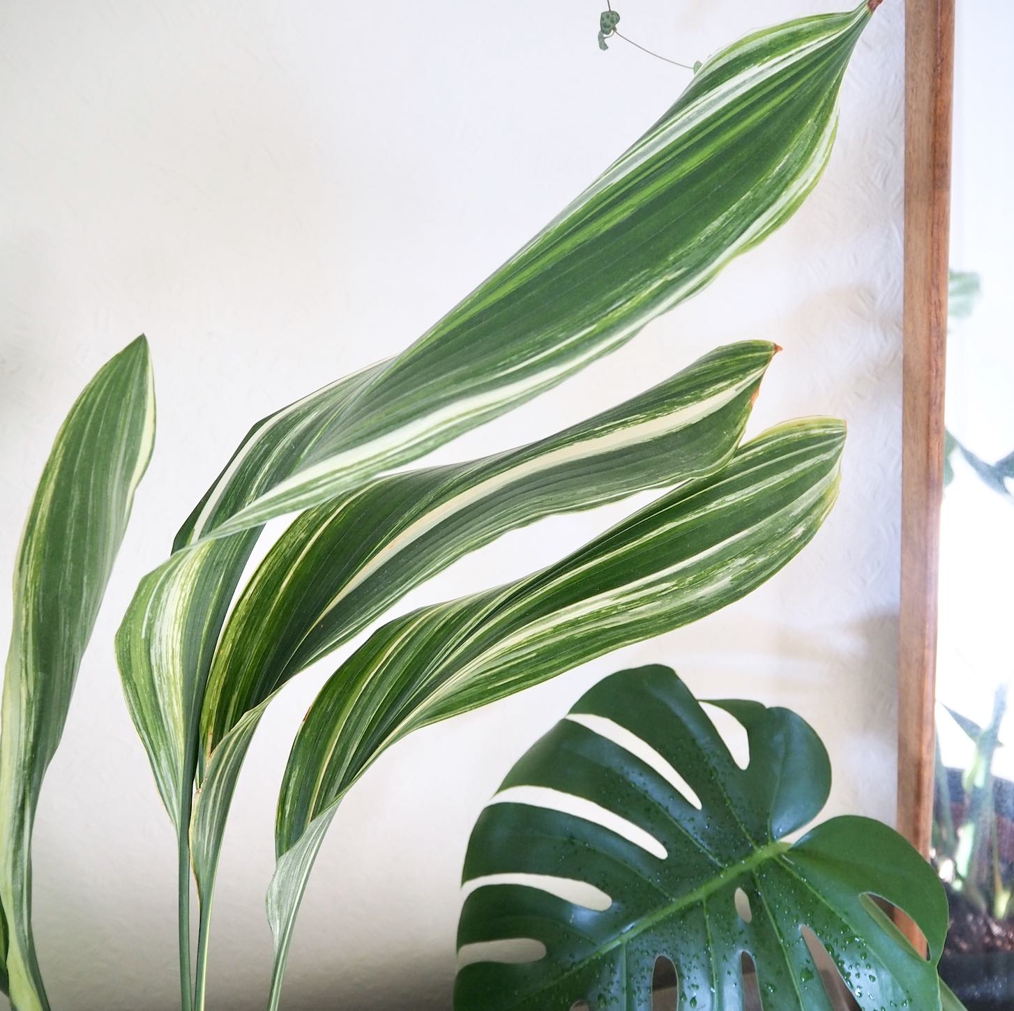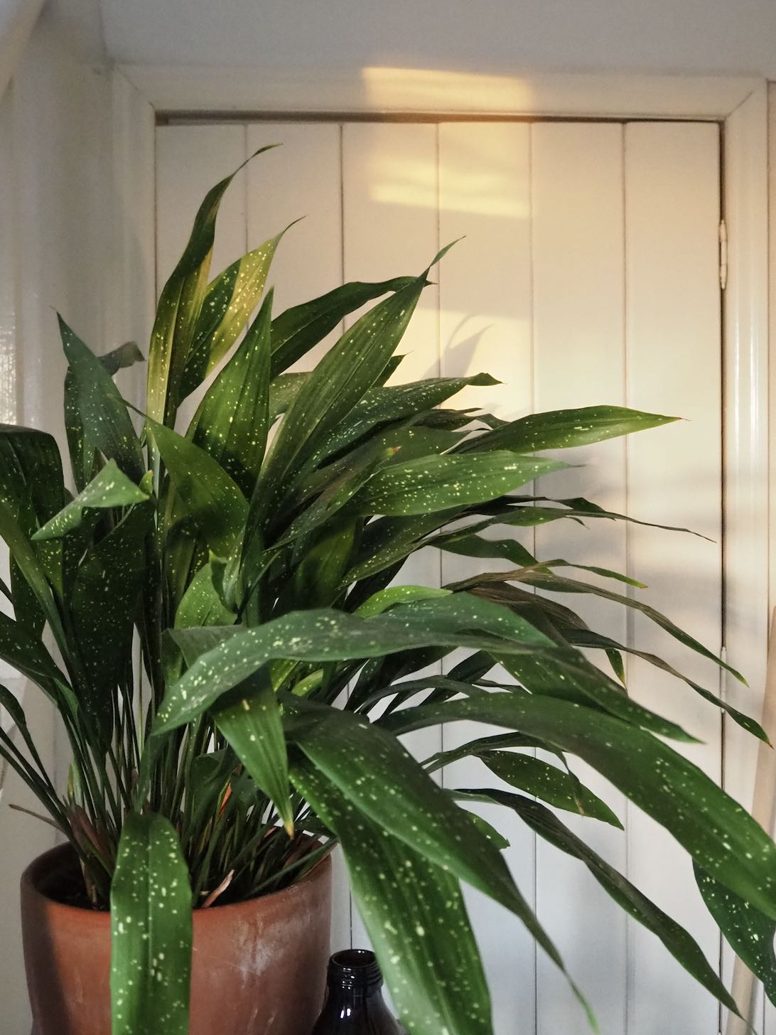 After some time in the kitchen, my beloved ‘milky way’ cultivar (above middle + right) got placed on an old machinists chair in the living space around 2.5 metres from the south east windows + I must say, I’ve been quite good at remembering to water this one! I’ve had about 5 new leaves this year, which for an aspidistra is extremely good going. My variegated ‘okame’ is the slowest grower of all my houseplants but one new leaf appeared in August, which is better than none, right? It’s still not hardened but has a very beautiful stripe along one of the edges — I must take a photo soon.