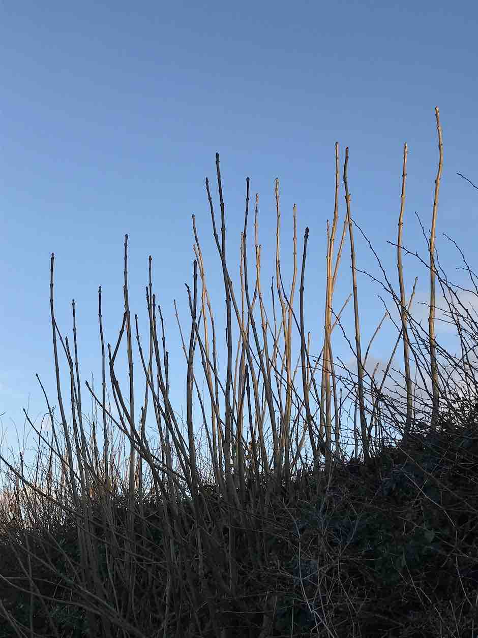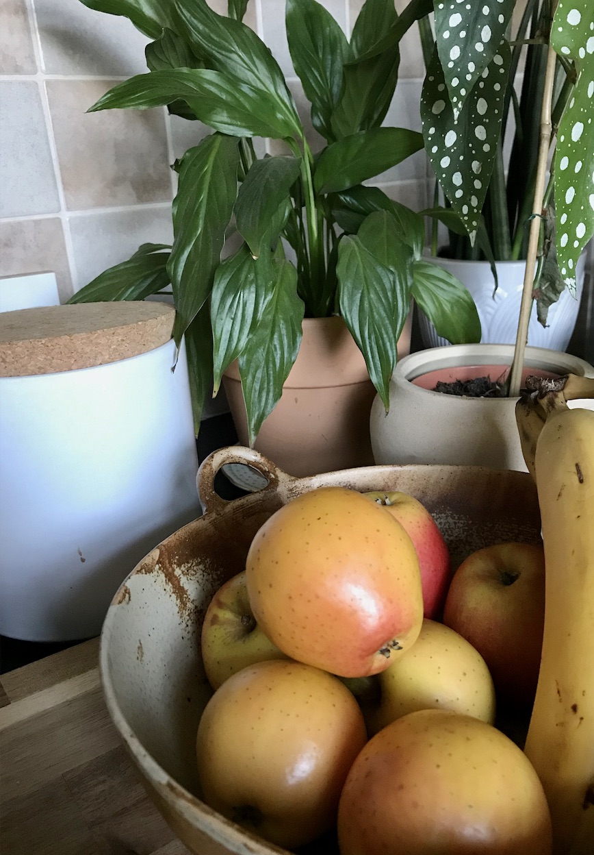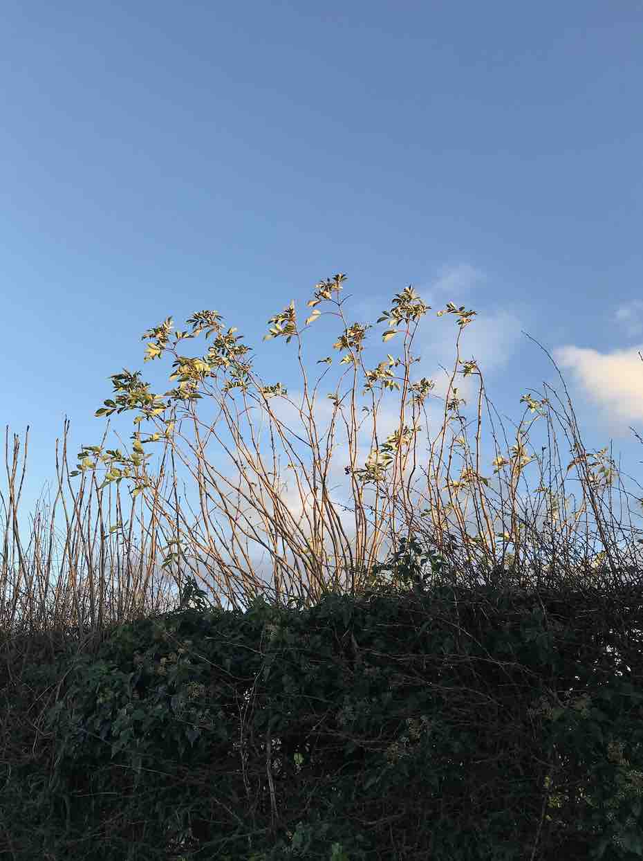 After what seemed like a never-ending succession of dreary grey days, the weather forecast promised ‘sunny intervals‘. A morning glow crept across my bedroom wall, throwing Ficus shadows on the uneven plaster. The brightness illuminated details to my houseplants I had missed; the silver spots of my polka pot begonia on the kitchen counter, the pink tint to the variegated string of hearts nearest the window + dust settling on the Aspidistra foliage. Outside, the bare trees stood against big blue sky bathed in golden light.