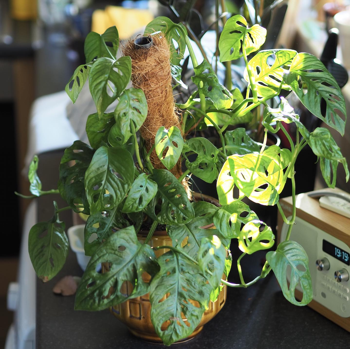 I had a tumultuous time with my Monstera adansonii in 2020. A few years ago I grew a beautiful plant that I ended up parting with because a customer really wanted it + I did the nice thing + let it go. After a few months, I really missed having one, so brought another small plant home + decided I’d try train it up a coir pole. Turns out I didn’t like how that looked so I got a U-shaped bamboo cane + started to train my plant around that instead. This was working well, but as the colder weather set in around October, the annual yellowing of a few leaves at the base made the display look a little…sparse. So I have started over once more + have separated the vines across a few planters + cut up the others to propagate. They can be slow to get going + it’s a bit of a waiting game, but I love how little pots of adansonii look, so let’s hope for some rooting happening soon.