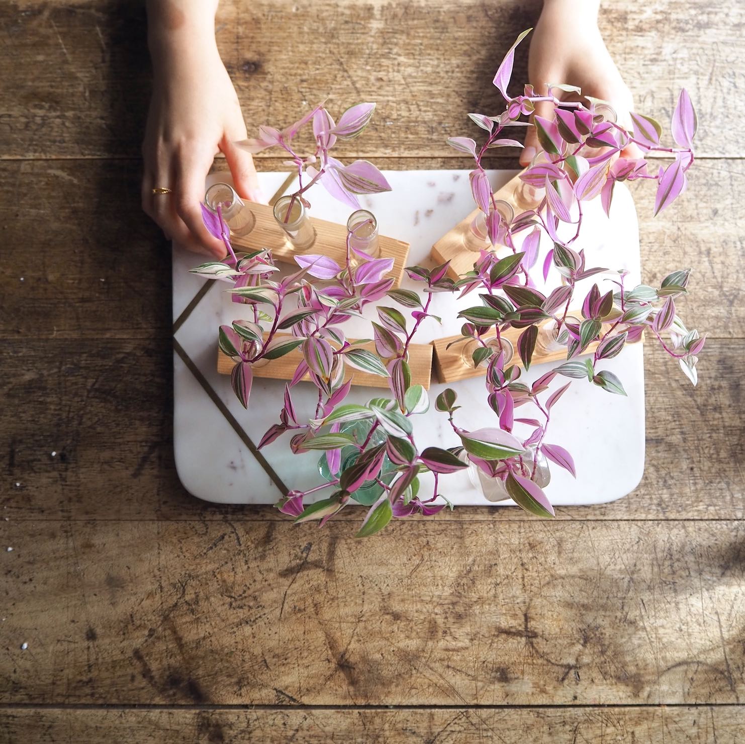 This is the ideal time to get your scissors out + give your plants a haircut. After winter things can look a little straggly, especially my Scindapsus + string of hearts this year! Some of my spider plant babies have started to dry a little on the stem, so I’m going to root those + pot together to make a fresh new plant. Propagating is one of my favourite houseplant related activities because, it’s a bit of experimentation, it allows you to get you to know your plants better + well, you can make new plants for free. Sounds good, right? If you are new to houseplants + are interested in giving this a go, have a read of ‘Everything you ever wanted to know about houseplant propagation‘.