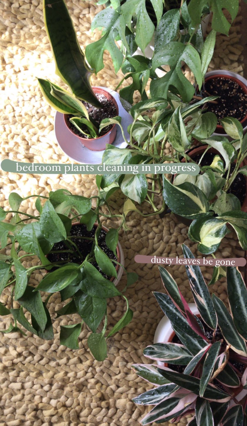 If you have read my blog or followed my instagram for a while, you’ll know how integral cleaning the foliage of my plants is in my care routine. I’ve always lived in old places near roads, which means things can get quite dusty, which inevitably means the leaves of my houseplants need regular cleaning too. Just spraying water on them won’t solve the problem — a proper shower or physically wiping each leaf with a cloth is sometimes necessary, holding your hand under the leaf – see photo below. The plants I notice need it most are my Ficus — especially my lyrata bambino (baby fiddle leaf fig) as the undulating leaves are a real dust magnet! Cleaning your foliage can be a really rewarding task + is great for pest prevention. See ‘A friendly reminder to clean your leaves’ for more on this.