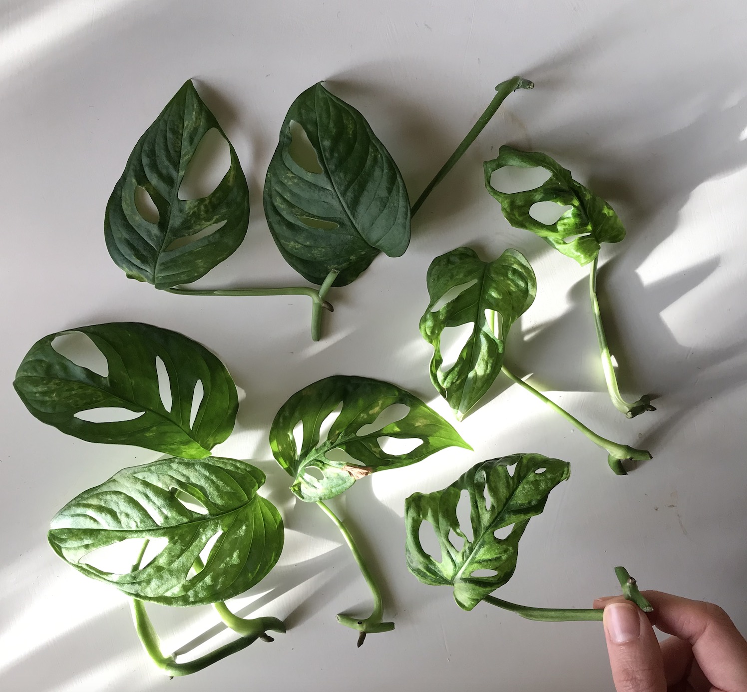 This is something I often wait until Spring to do as adansonii stems are not as robust as say, pothos or scindapsus in my experience — but I did manage to prop a few stems to make up a little pot last weekend. I love how little pots of these look!