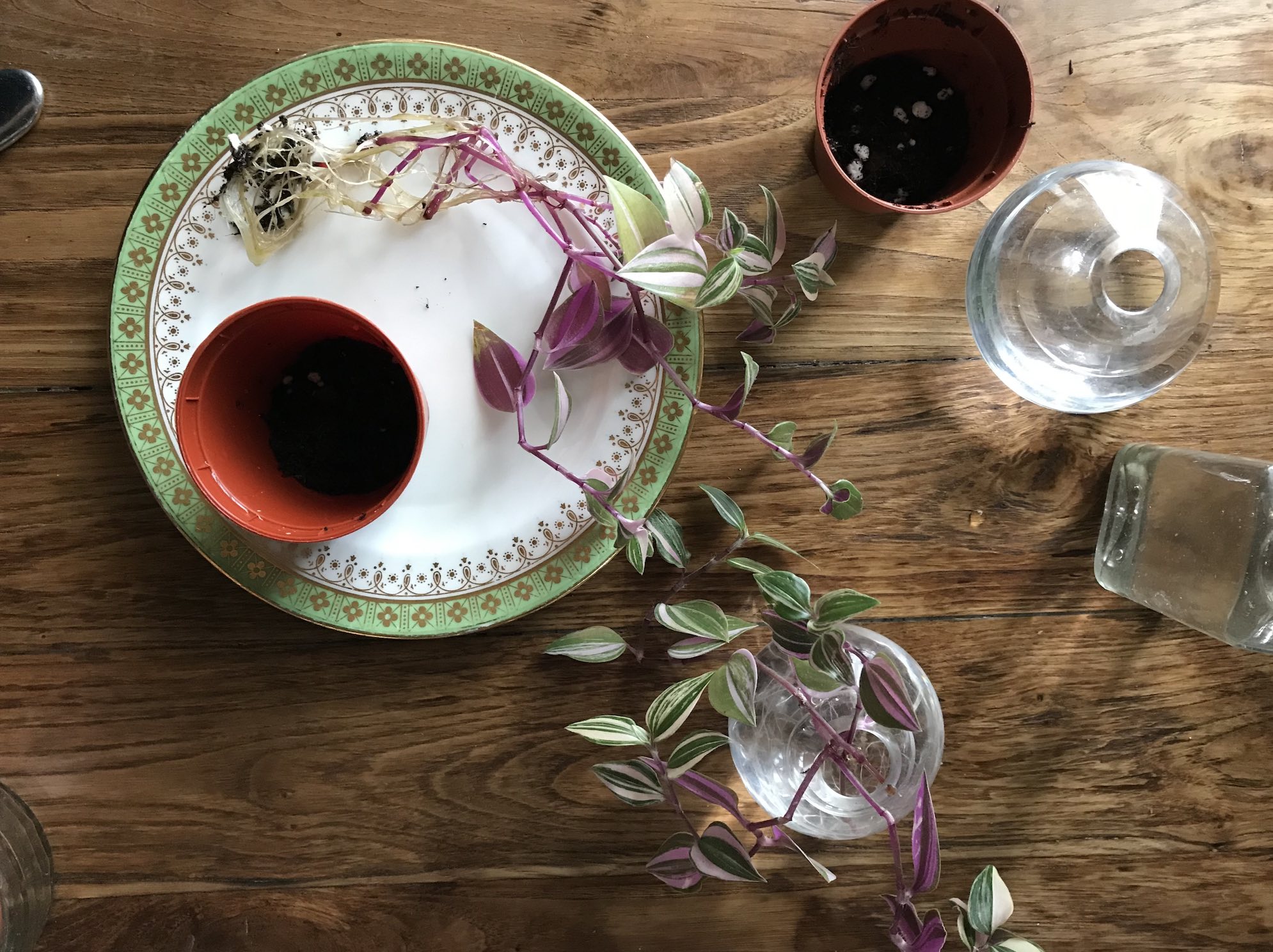 If you are a regular reader, you’ll know my tradescantia fluminensis is a plant that I’m always propagating + these stems have been rooting for longer than I care to admit! I’ve got a few tradescantia posts, including making a new plant from cuttings so have a look if you want to read more on the process.