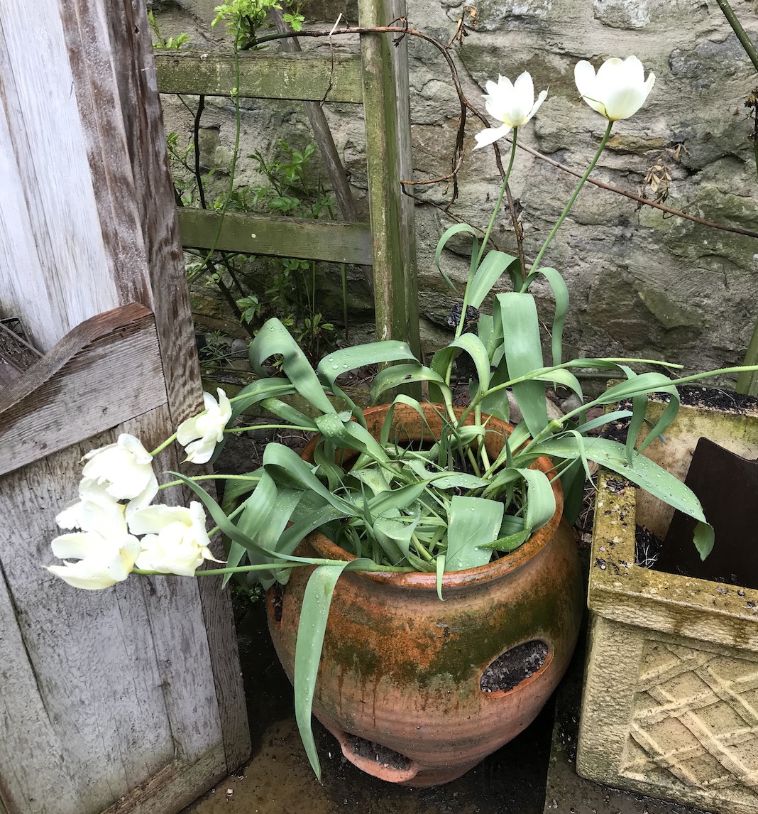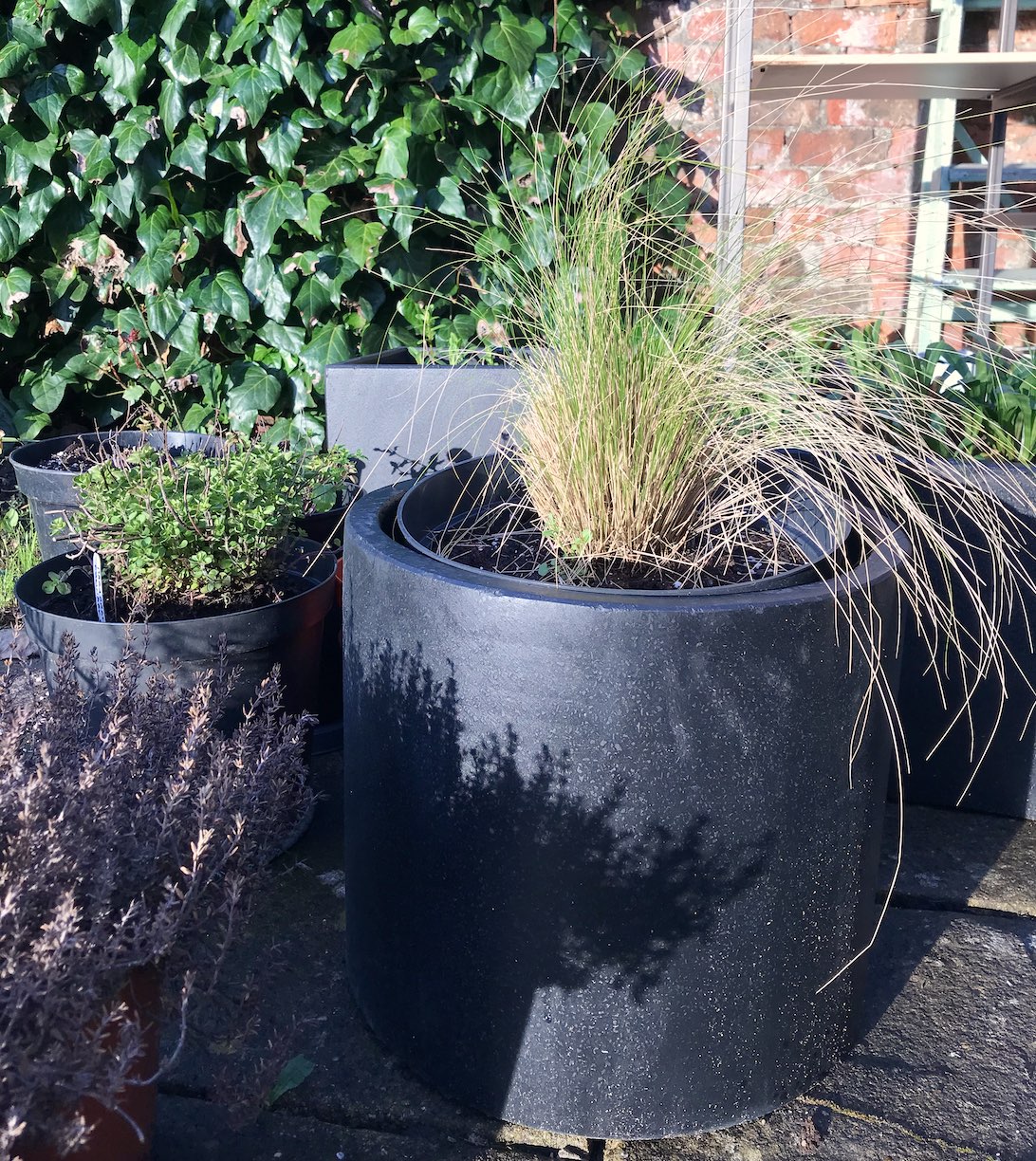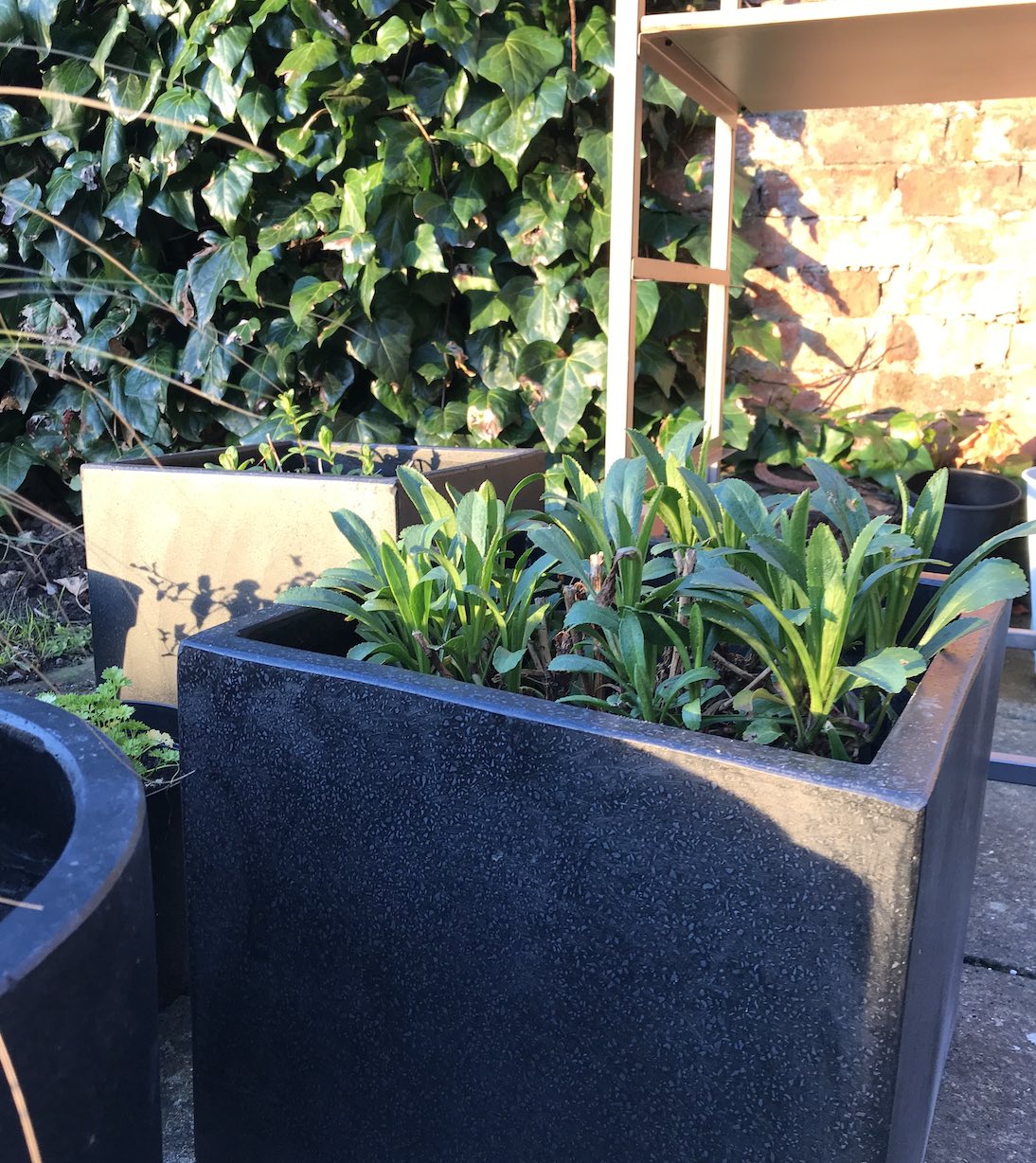 In an exposed position, be prepared to witness lightweight plastic pots getting whipped up in blustery weather… I nestle mine together on the patio at the cottage yet they still sometimes take flight + end up rolling around the path. In my defence, my heaviest of planters are still in Wales because they are not easy to move, so I have been making do this year with the old nursery pots I always have a stash of! If frosts are a concern, check that your planters are frost proof or at least frost resistant before investing. This ties in with your location + drainage because waterlogged compost will expand as it freezes + contract as it melts, eventually breaking the pot. If you are in a very wet location, this is something to consider. Classic terracotta in a frost-friendly treatment is more readily available now too + a great budget option. You can give these plants a helping hand during the colder months by moving them to a more sheltered position if possible, but raising them off the floor on feet or a stand can help prevent breakage as the pot is not left in direct contact with the ground in cold temperatures.