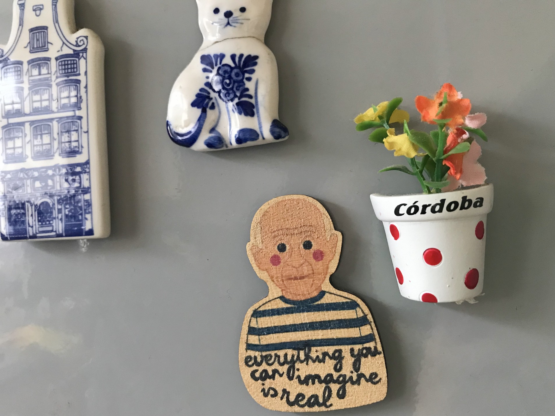These items are quite easy to find if you know where to look. If you have vertical space, old water hoppers (used with guttering + downpipes) are a lovely vessel that when grouped together can be really striking. Here I’m thinking of conjuring up an alternative, more Victorian/industrial aesthetic, of those magical Spanish planting displays where terracotta pots are strapped to walls, often dotted with cheerful red + pink planting. With the hopper setup, they’d look great against old brickwork. For something closer to the traditional Spanish iteration, you can also source lots of vintage terracotta for decent prices to re-create this look too. In Southern Spain, there are whole festivals dedicated to this + people open up their private patios as a celebration of this type of planting, showcasing how they make the most of their vertical space. Plants adorn the often whitewashed walls in the most creative of ways + I’d love to see these in person one day — it’s certainly an inspiring idea for small space gardening! My friend Catrin visited Cordoba a few years ago + brought back a little plant pot magnet that lives on my fridge: