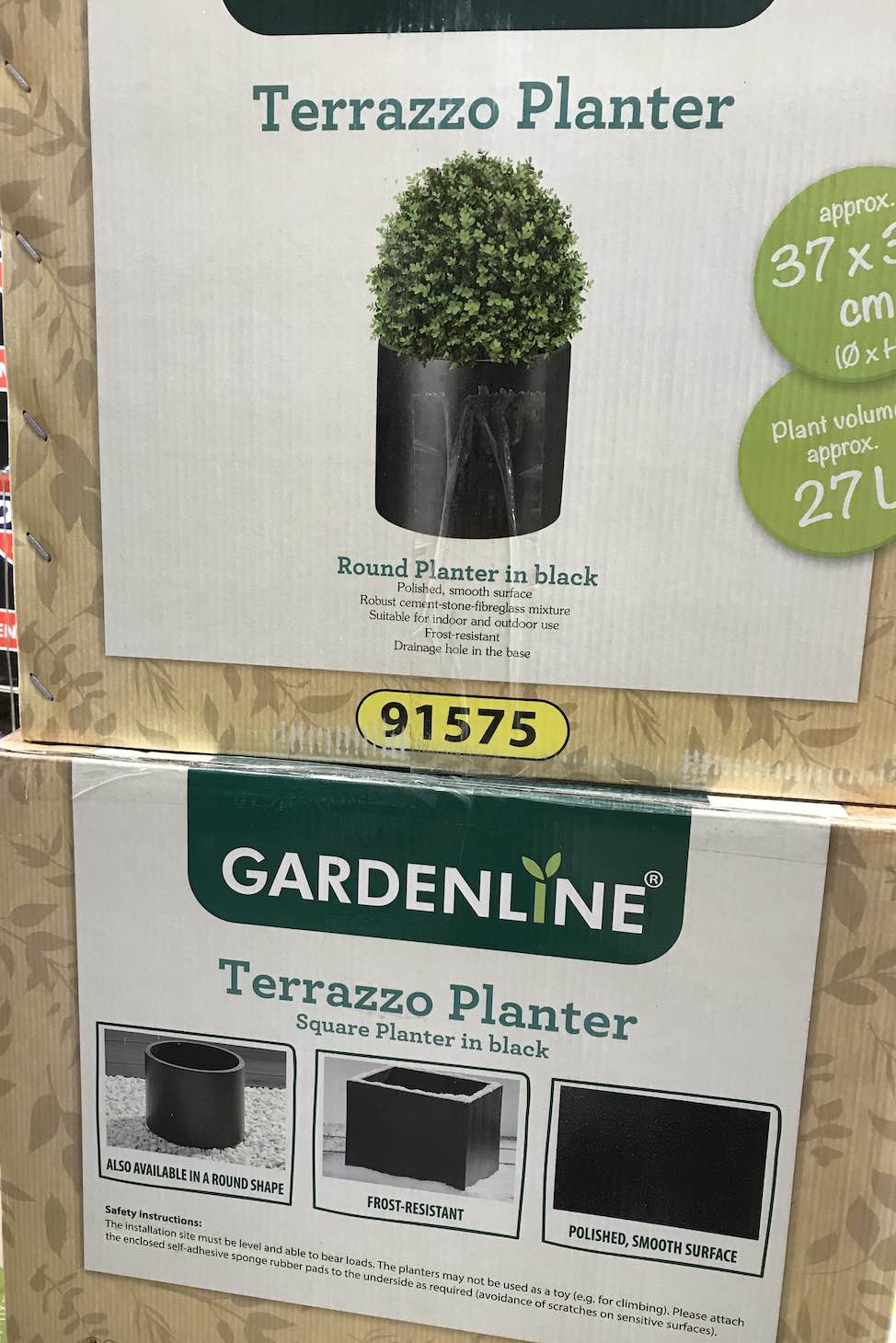 Some photos taken in-store, in case you wanted to see how they are packaged if you wanted to keep a look out for them, along with some metal alternatives that look perfect for more petite patios. If you are a design lover, these metal ones are really similar to the more £££ Ferm Living/ Scandi-style planters: