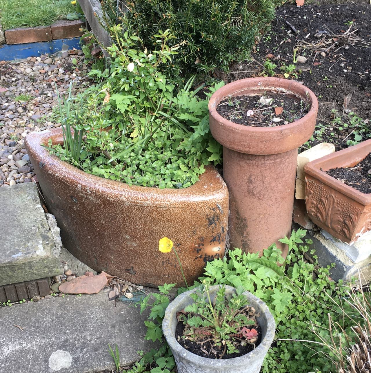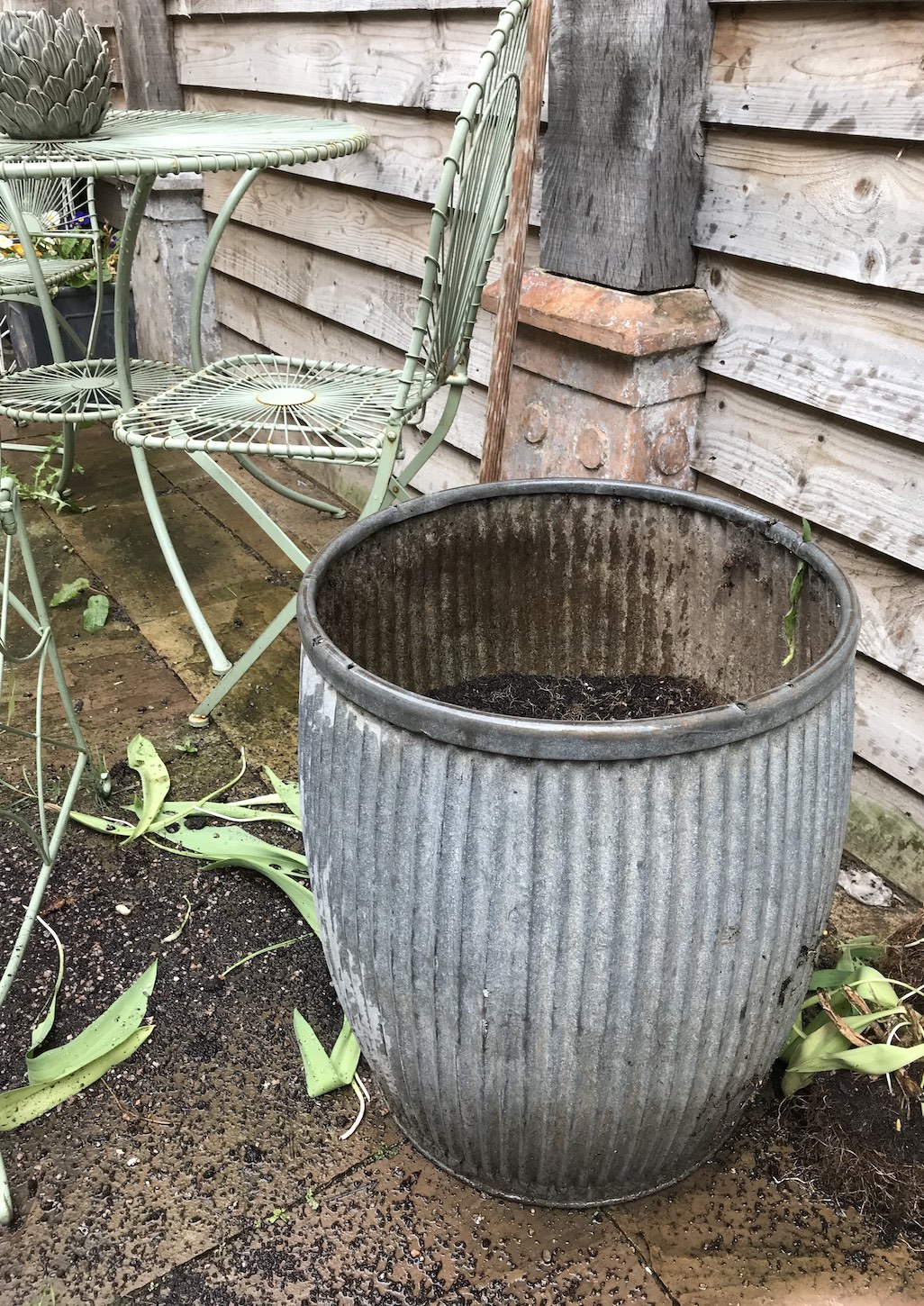 Scale is important + it’s why I generally prefer looking at preloved ‘stuff’ because you can often get more (volume) for your money. Fewer, but larger pots generally tend to look more considered + can also cut down on your patio maintenance whilst you aren’t trying to water loads of different pots! It also pays to think outside of the idea of ‘conventional planters’ + let your imagination roam — see items as vessels for plants so look at shapes that might be visually similar to planters, albeit with a different previous or intended use. If you find this hard to visualise, it also works to think through the process in reverse, starting with the plants. What plants do you have/do you want to grow? What material suits them? How do you think they will look in a variety of pots? What style speaks to you?