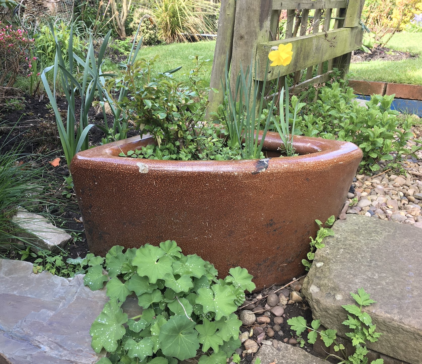 An old feeding trough as in my relatives garden below is usually home to a couple of courgette plants in the summer months + is a good small raised bed option for a garden that’s more miniature in scale. The salt-glazed horse trough below right is also a lovely relic that looks right at home: