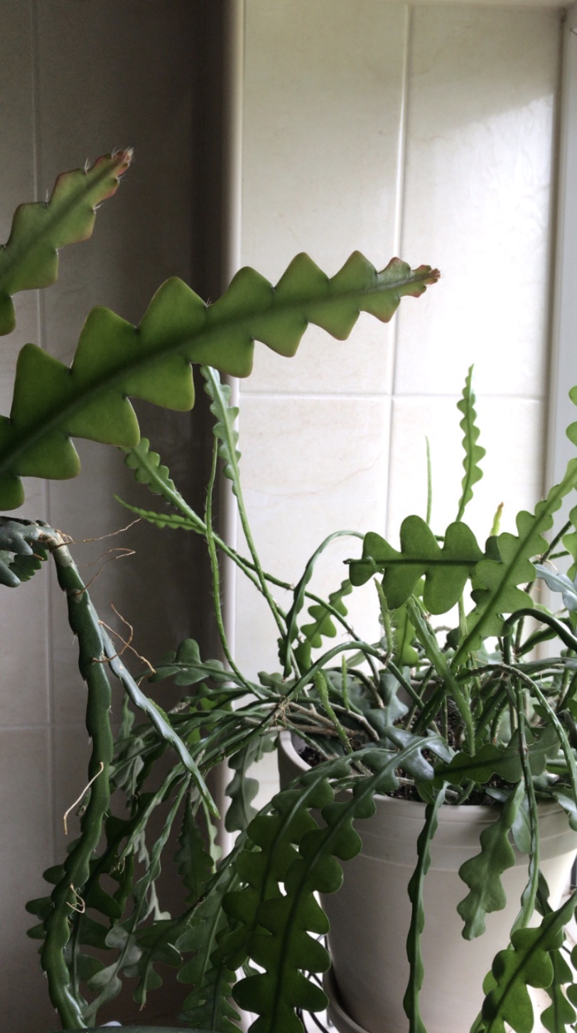 After growing my plant in decent conditions over the last year, I’ve been happy to see some transformative growth + as the plant has matured, the shape of the stems are looking more distinct + different to the disocactus anguliger. As with both of these plants, thinner leaves with less pronounced ‘zig zags’ are often present in younger plants but can also be as a result of a lack of light. They do widen as they grow but if leaves are very spindly + stretched they are likely to remain this way.