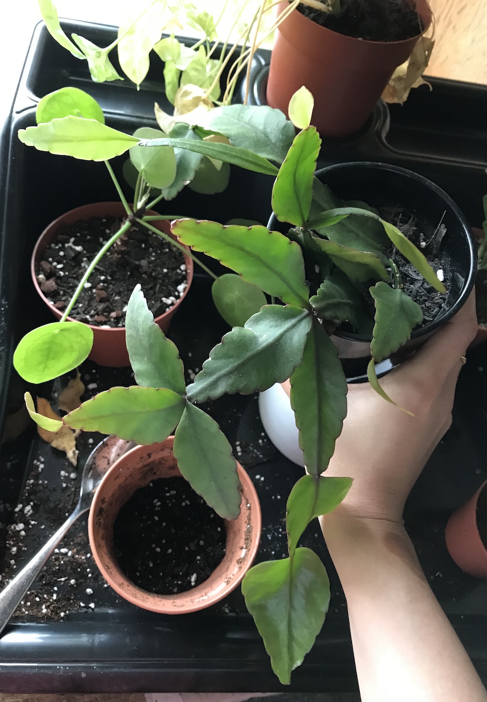 This final Rhipsalis in my current collection was another propagation experiment because I just loved the weird shape of the leaves! They are like rows of diamond-shapes with scalloped edges stacked together + joined by their points! As bizarre as this description sounds, the photos below will illustrate what I mean a little better…