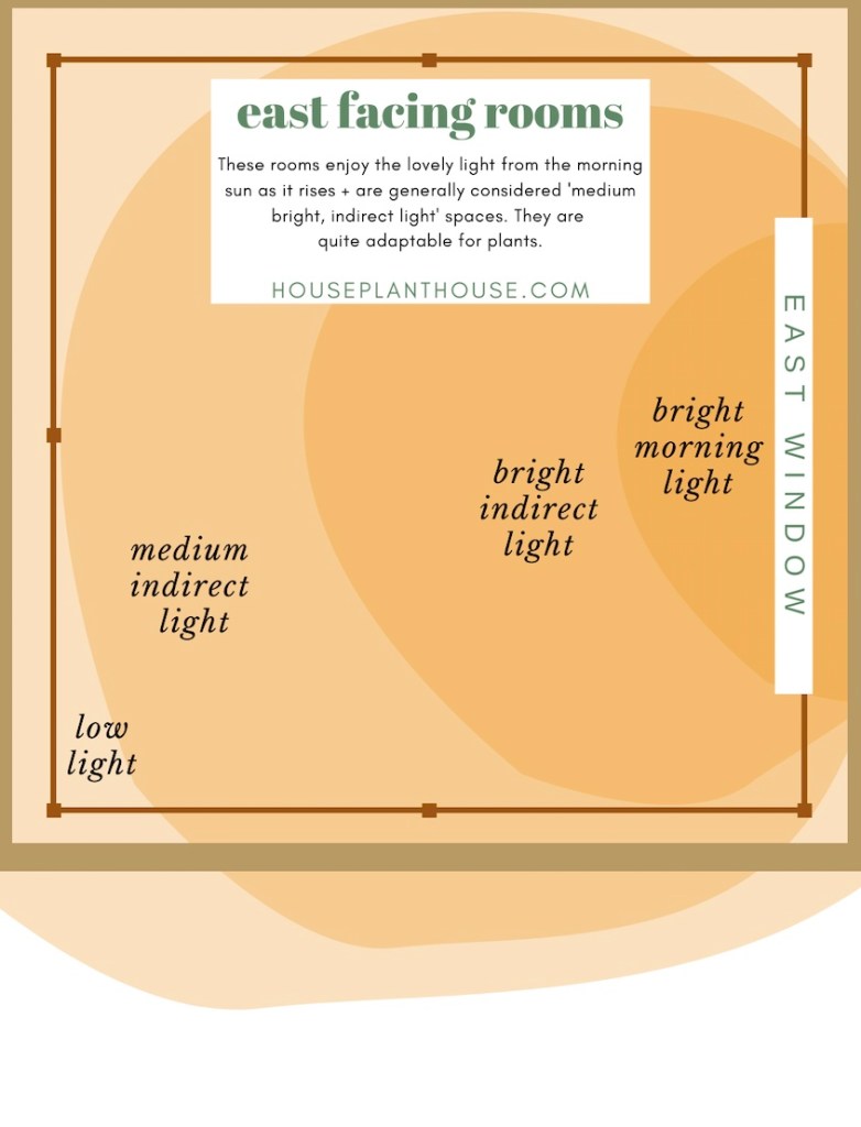 - This is your typical ‘bright indirect light’ setting, with a degree of direct sun later in the day which is less intense than you would find in a South-facing location