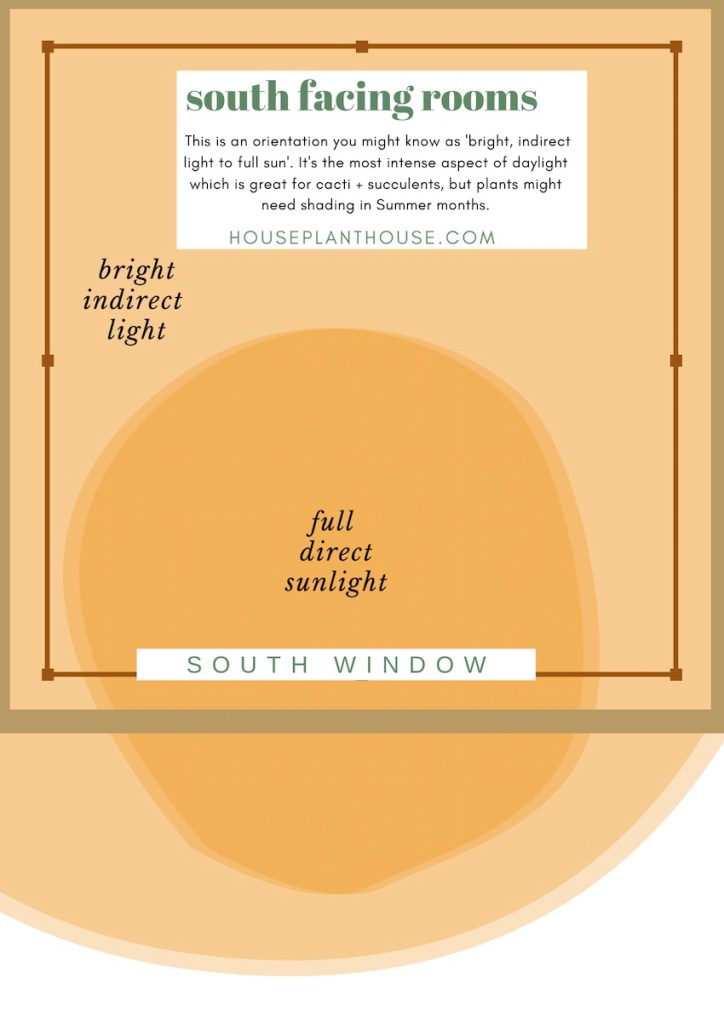It’s worth noting of course that the majority of houses will not have been built to perfectly align with compass points. So a room that might be South-East facing — as was my living space in the cottage — will mean that the actual way the light behaves will be a blend of the characteristics of these two orientations. To maximise the way that light enters your home, I always say that a few carefully placed mirrors adjacent to windows can really help bounce the available light around + it’s something I’ve done in every place I’ve lived! In terms of supplemental lighting in lower-lit environments, I’ve got a post that I’ll link here in case you are interested. I’ll also link my Getting your houseplants ready for Autumn post that might be helpful at this time of year if you are noticing a seasonal shift occurring.