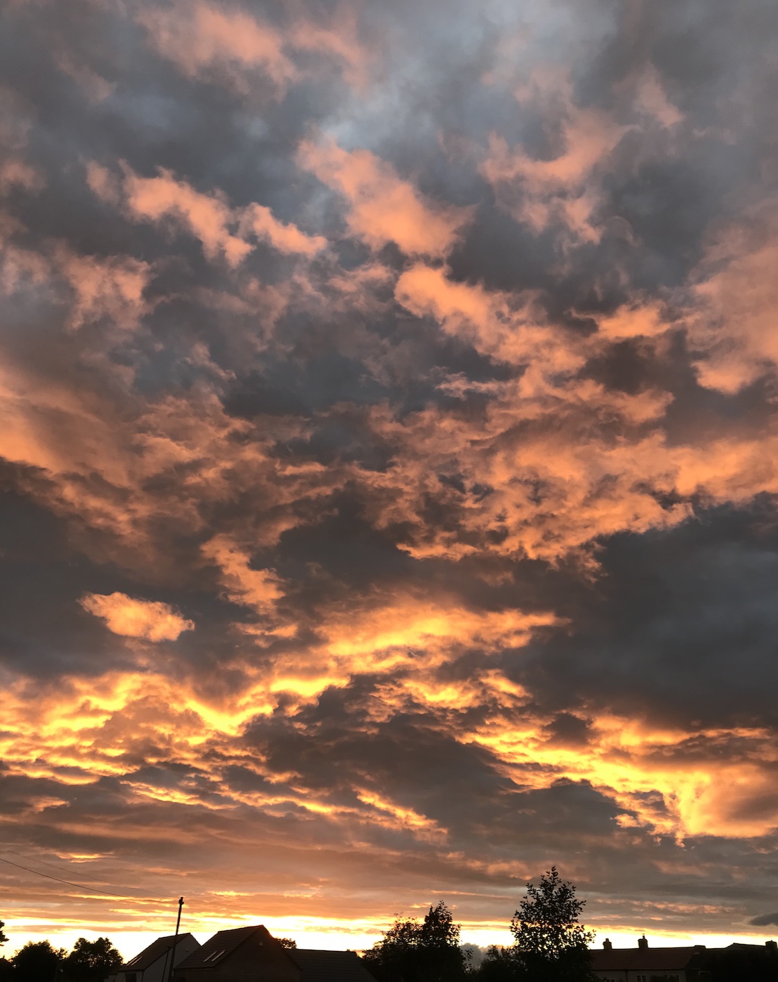 September was a transitional month — unpacking, cleaning, writing, more unpacking, digging, building, painting. And it looks to be that way for a while yet. The houseplants are needing much cleaning as the dust settles. So in the latter part of the month, I tried to get back into taking more frequent walks as a way to clear my head. I have got my camera back out + before the evenings start to draw in, I go outside as the sun is setting, chasing the fading light. Swathes of highlighter-colour skies appearing out of nowhere, illuminating the new place in ways I’m not used to yet. Hay bales occupy fields like fleeting sculptures, soon rolled up + moved on. Small seasonal changes are starting to reveal themselves in the landscape. A visit to a glasshouse on a grey day, tired blooms and gardens are starting to look dishevelled and overgrown now. Fluffy clouds and green fields. Evening flights of swallows overhead. Tomatoes ripening on windowsills.