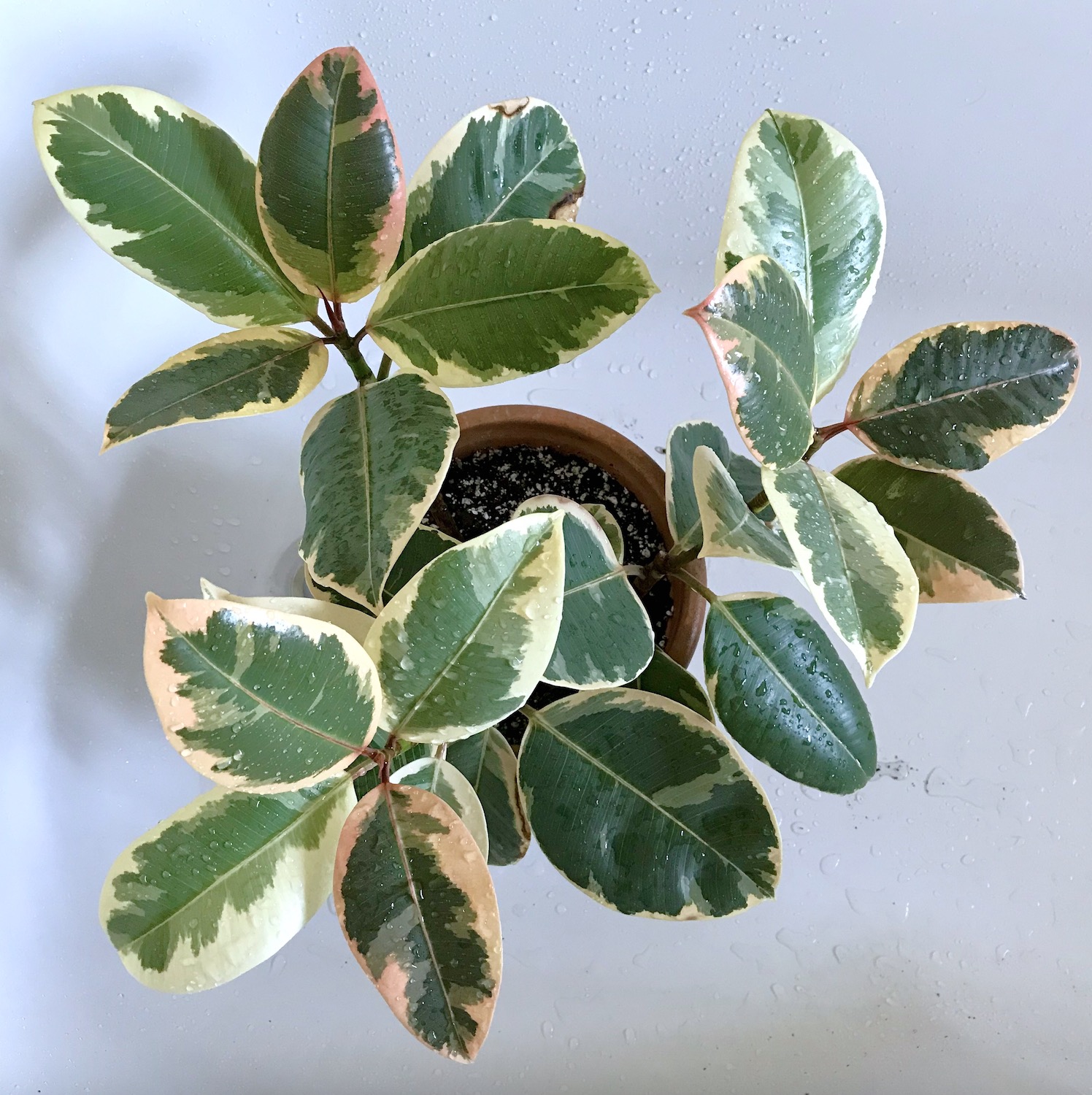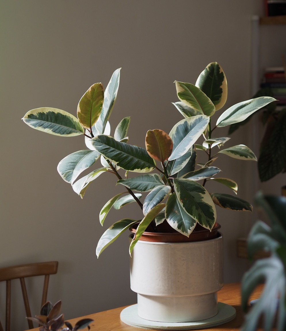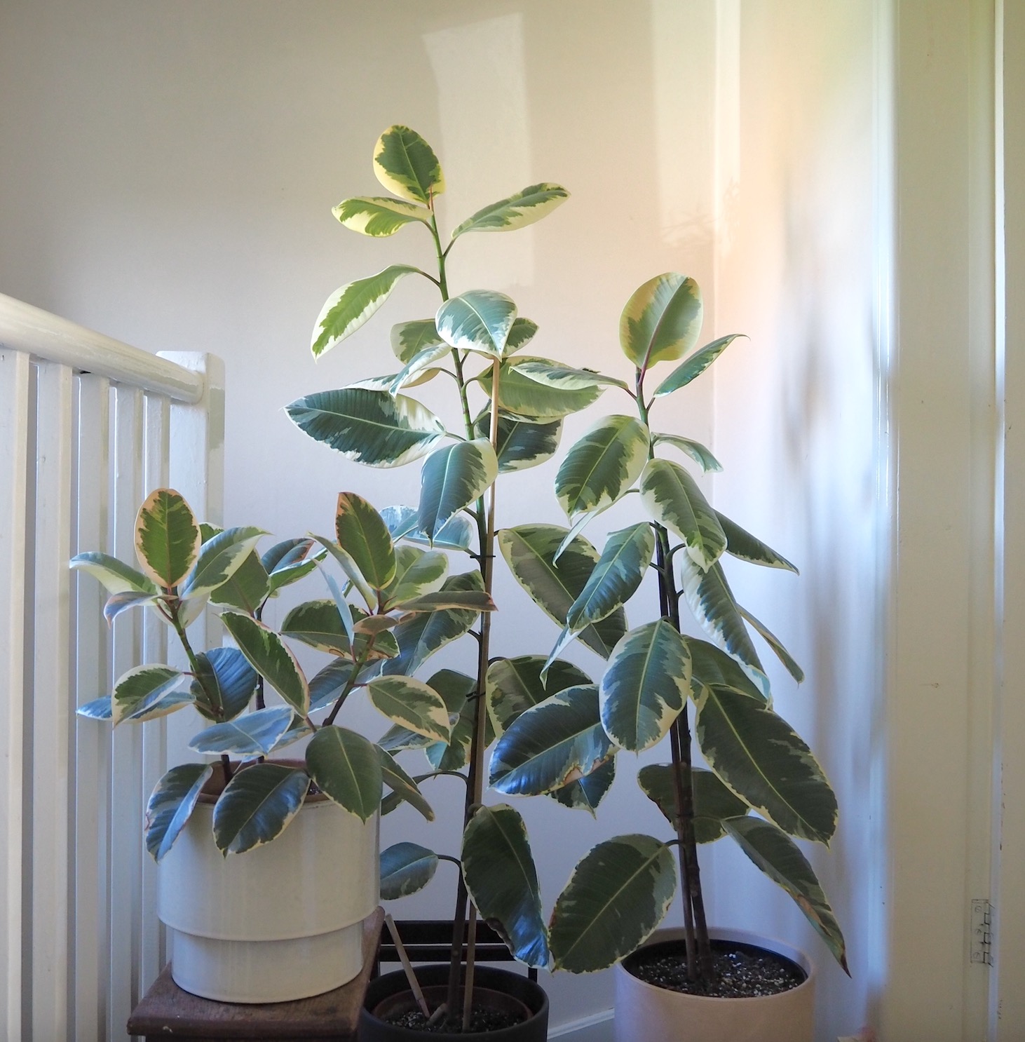 My three smaller ‘experiment’ Ficus elastica tineke plants