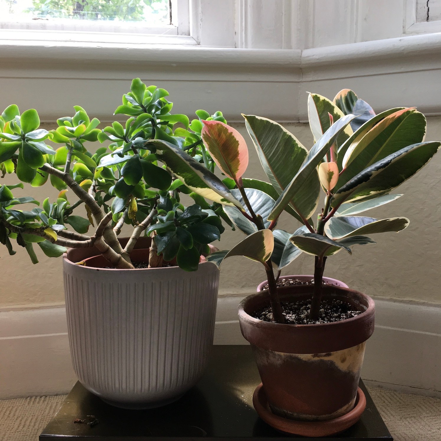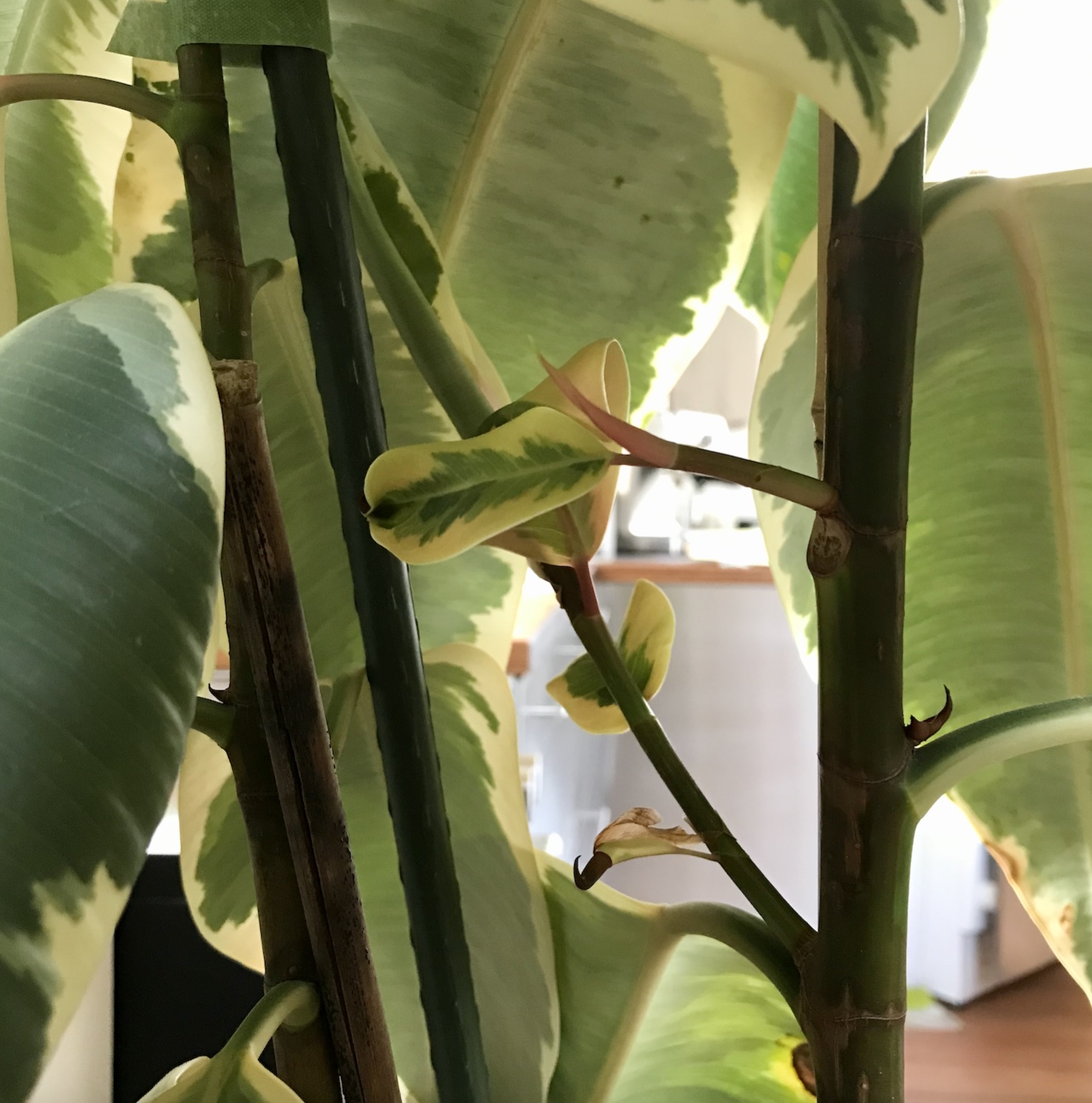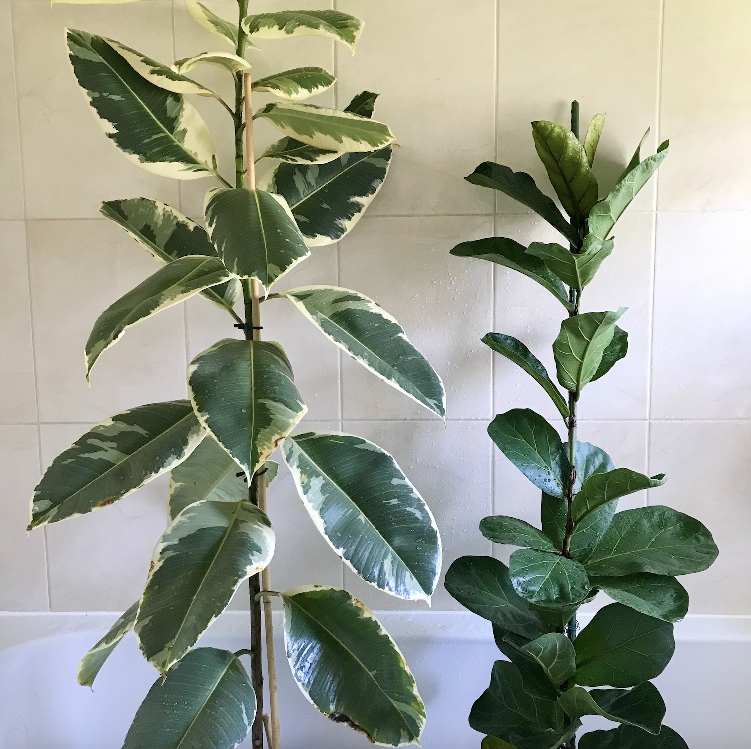 My three smaller ‘experiment’ Ficus elastica tineke plants