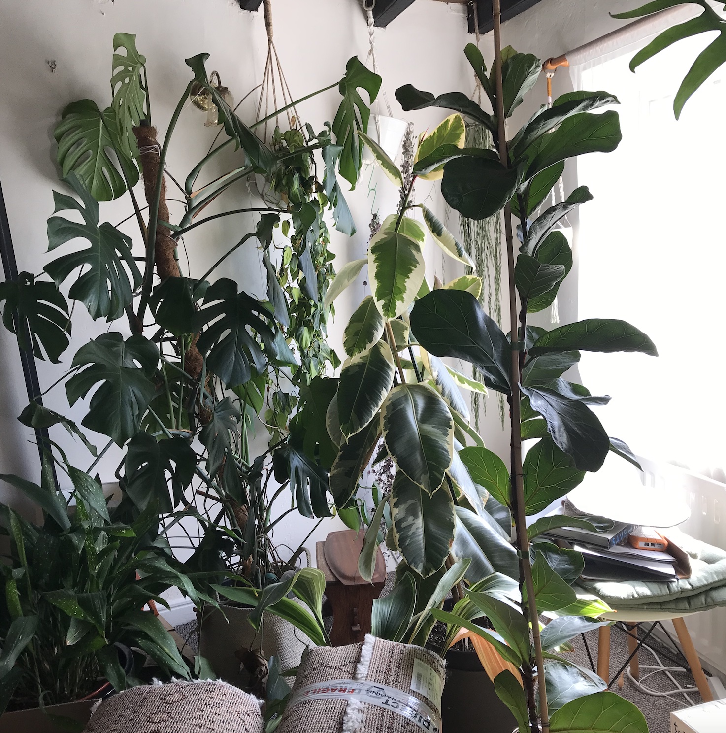 The photo on the right is actually where my larger plant currently lives in the new place. As it’s still a building site in parts here, I’m having to be creative with keeping my houseplants out of the way, so this pot might not stay where it is permanently just yet. But hopefully you can see that it’s looking a lot happier than it was!