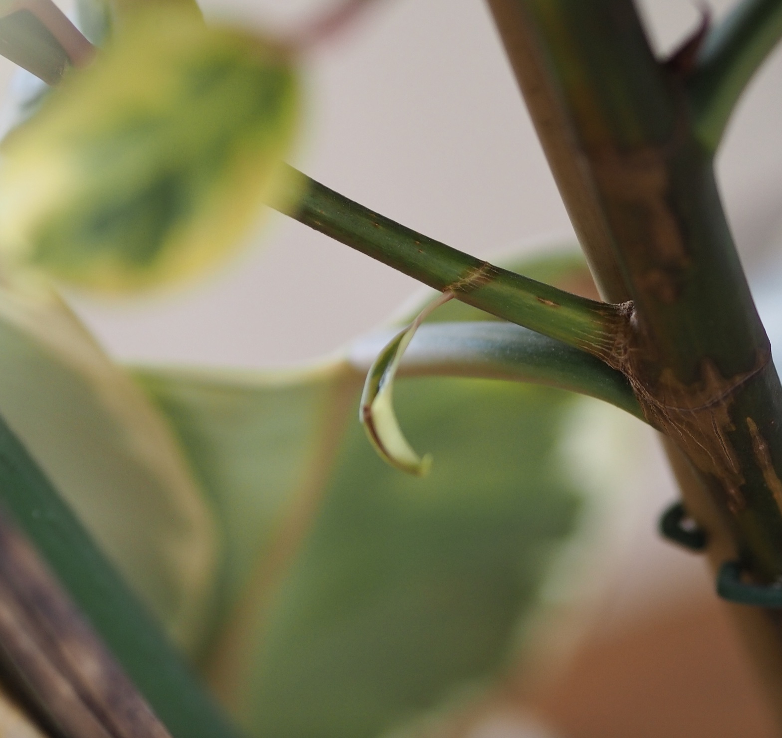 The most likely possibility that I can attribute to this burst in side growth is that the plant was receiving a greater intensity of light for a few weeks prior to moving house + after repotting. Coupled with this, the new place is warmer than the old cottage, so it’s likely that both these elements created a favourable environment for the plant to grow in this way.