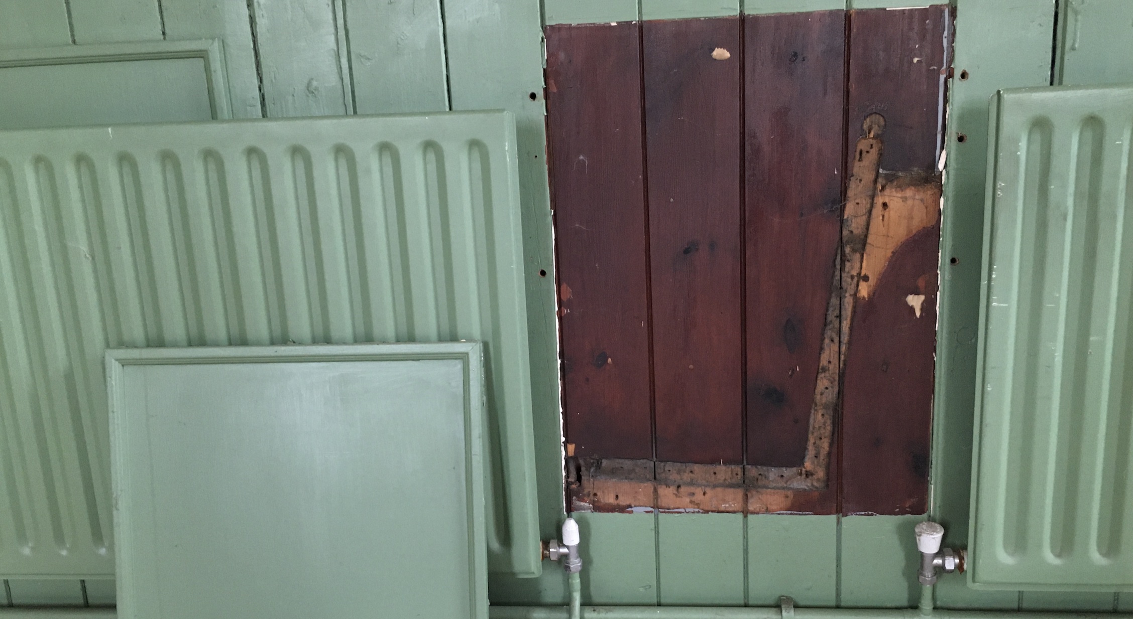 Back to stripping the place back a bit + on removing some decorative panels, we uncovered the markings of where the pews fitted into the wall! This was brilliant to see as it really gave a feeling of how things were originally laid out.