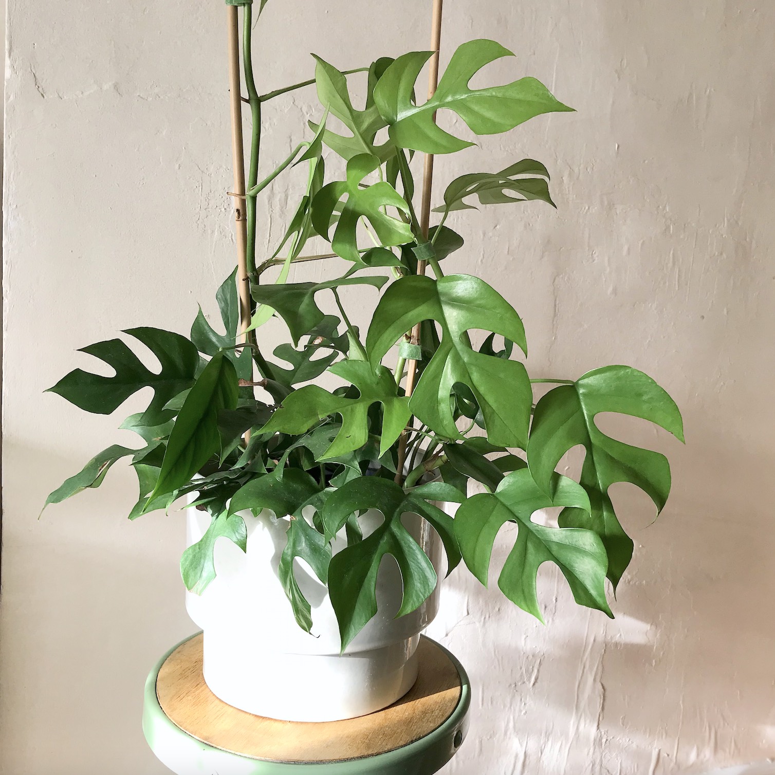 If you like a leafy plant but don’t have room for something like a Monstera deliciosa, the extremely popular Rhaphidophora tetrasperma is worth thinking about for that west facing space. These plants enjoy a position that receives fairly bright but importantly, indirect light. I’ve previously grown mine around 1 metre away from my south-eastern bedroom window behind a net, but now it grows 1 metre away from my west facing window + is doing well. It also can enjoy a south-western spot if you can provide it, but during Summer be sure to protect the foliage from harsh sunlight. Compared to a Monstera deliciosa it has thinner, less waxy leaves which means it’s a little less robust + more sensitive to prolonged, strong sunlight. In a position that is too bright, the leaves have a tendency to yellow, so if your plant is looking a little washed out with crispy tips, this is the likely cause. This plant is a notoriously fast grower when it’s happy though + is adaptable + a cheerful addition to a houseplant collection!