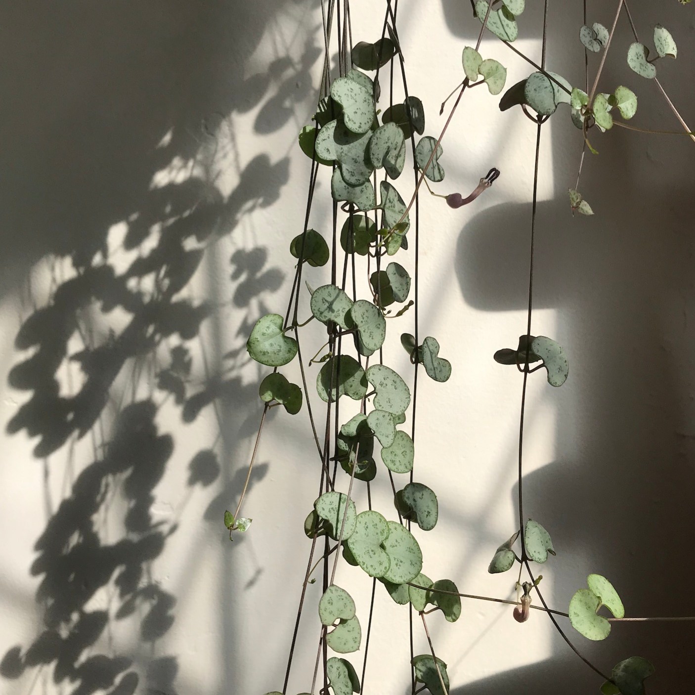 Ceropegia woodii is a beautiful hanging succulent plant that is also known as a rosary vine or chain of hearts, often seen tumbling off the bookshelves of Instagram. My String of Hearts plants really are a key part of my plant collection here at House Plant House + I grow two ‘regular’ SOH + a variegated plant too. In a brighter location the variegated String of Hearts is a great choice + if the light intensity is strong enough will develop a pretty pink hue. I currently grow my three plants adjacent to a west facing window which suits them well + in my previous place, I grew them one metre away from a South-East facing window behind a net. This was an ideal spot, but I’ve also grown them in my south-west bedroom which also worked similarly —the plants enjoyed a few hours of afternoon sunshine, but not so much so that it scorched the leaves. I’ve put together a Growing String of Hearts blogpost here.