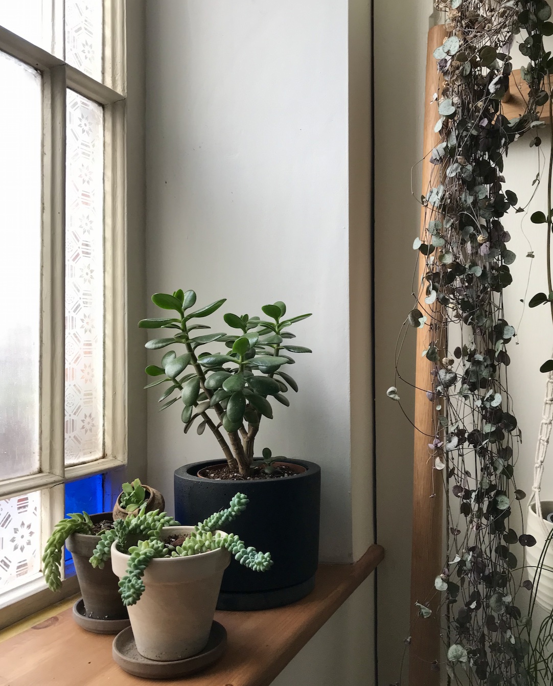 The Jade plant is perhaps most commonly known as a money tree or a lucky plant + is one that I love to grow! I have this undulata variety (below) which I’ve grown from a really small plant + a few ‘regular’ crassula ovata plants that I’ve propagated dotted around the place. I’ve found that I can grow mine well on a west-facing windowsill with ease, which is where the plant below right is currently positioned in the new place. A south-west, or south-east position are viable alternative locations too if that suits your home orientation. In the summer months, you might need to move them further away from the window to prevent them from getting a suntan.