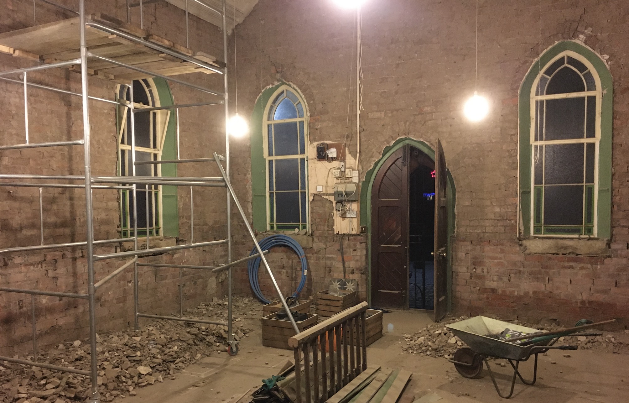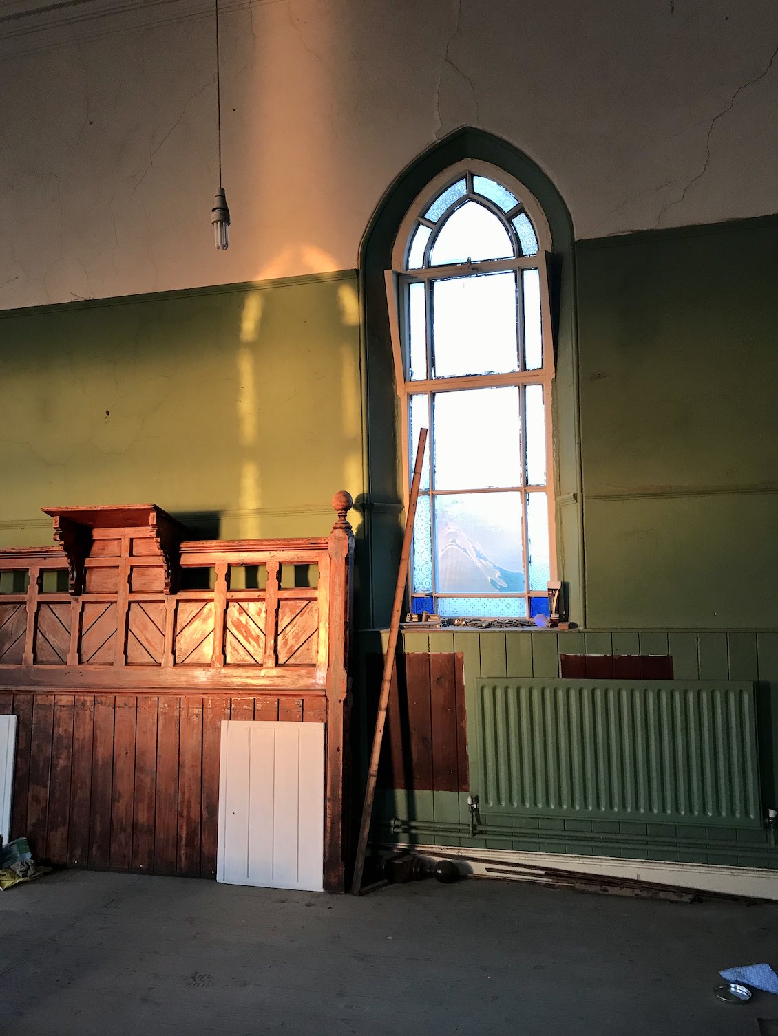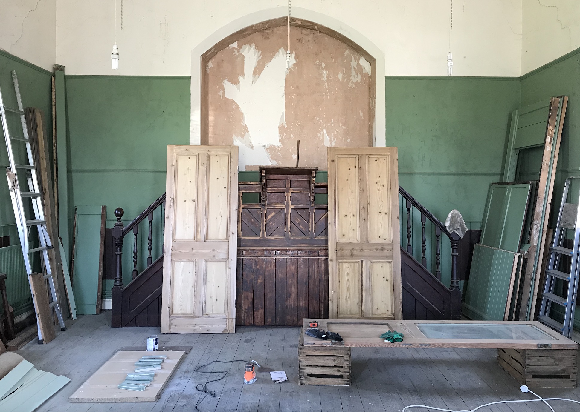 One of the aspects I was most struck by at this stage in the conversion was how the sound inside the Chapel moved from quiet to noisy! Until this point, there hadn’t really been any noise at all — because of the lovely, serene atmosphere inside we chose to work in silence and at times it felt quite monastic. There was something about working on things like the pulpit that seemed to warrant a peaceful environment, which also helped to fully concentrate on the task in hand.