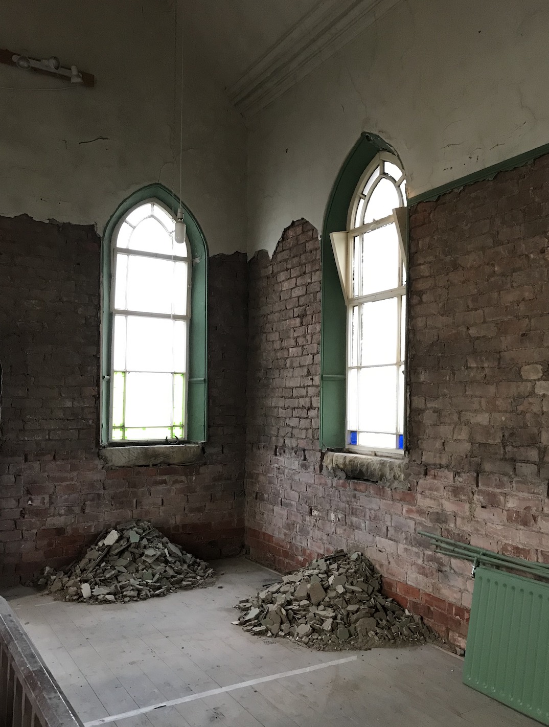 So with the pulpit, bench, panels and doors bundled away into storage it was time to empty the inside — we’d accumulated a lot of tools + stuff over the last few months which we brought back to the cottage temporarily as we prepared for the biggest task yet… I feel like this section could also be called ‘tearing down the plaster’ but not sure if anyone would get the obscure song reference (Fontaines DC)! But anyway, that’s precisely what we were starting to do…
