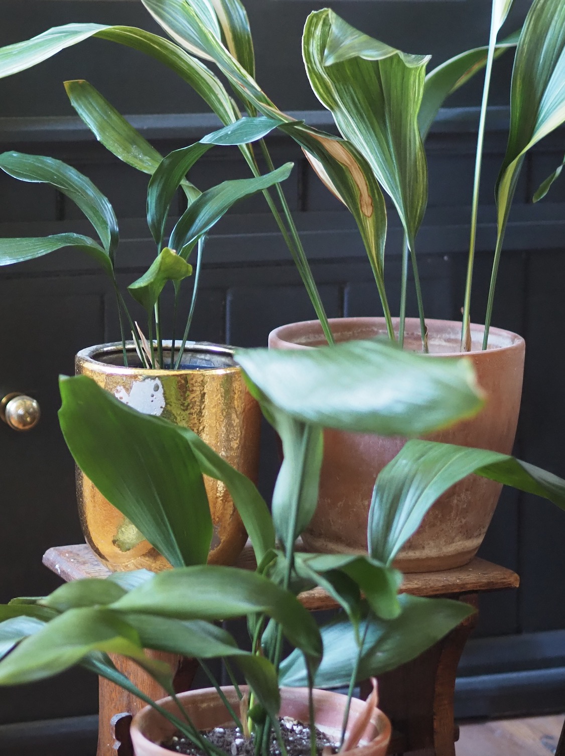 These are all divisions of Nan and Grandpa’s plant and my mum has some too now. The smaller gold pot (below left) is a division I made from the original division I made back in 2017. I love how this little pot looks and it makes a sculptural table top plant on a more unusual scale that is customary with these.