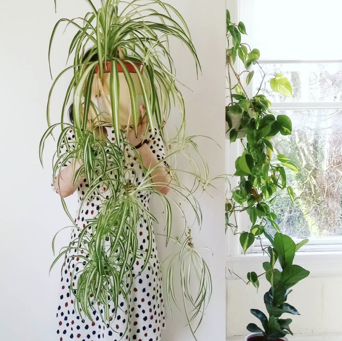 The story of my Spider plant collection begins in a little village in West Wales. A work colleague brought me a tiny Spider plantlet from home when I was writing my PhD thesis. She knew I was spending a lot of time at my work desk and that I had a growing plant collection. As a fellow plant lover, her work desk and windowsill was also strewn with plants! This little cutting rooted on my desk as I grappled with my studies and I soon potted it up.