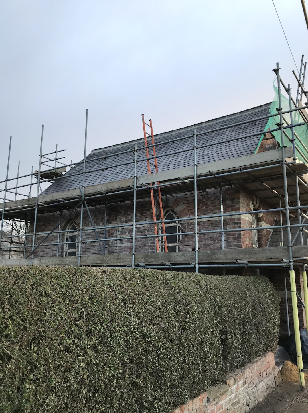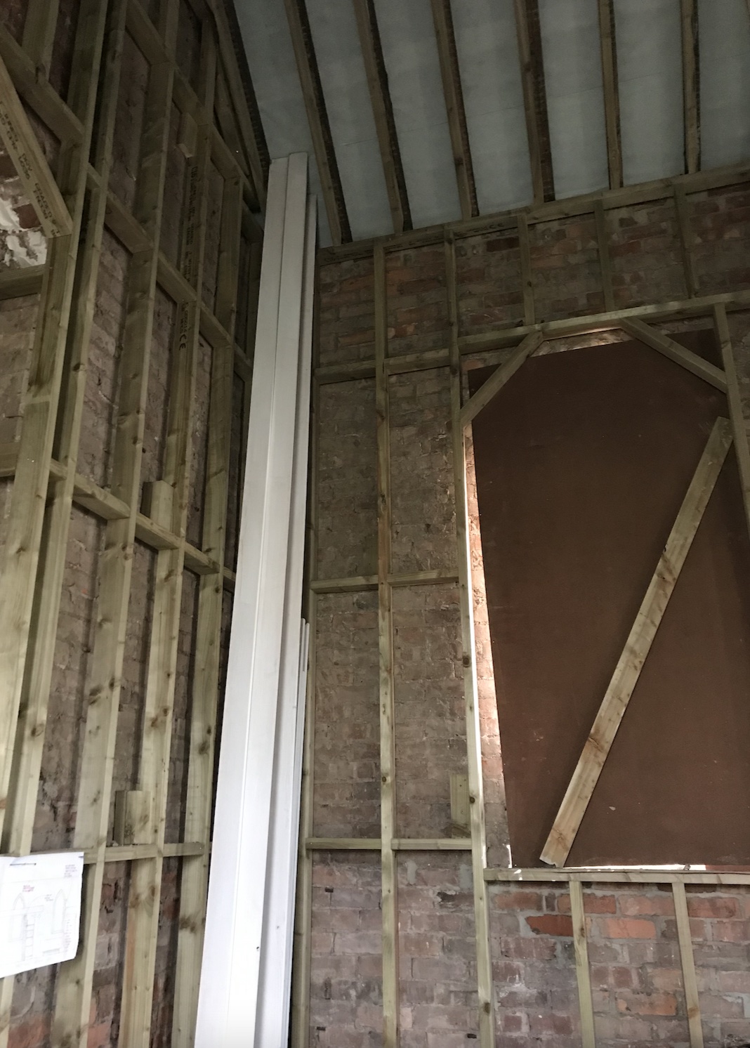 The roofers have been doing a brilliant job at re-covering the roof with the reclaimed slates. Below is a photo we took very early one morning of it looking really smart! Inside it looked different again as the membrane was covered by the slates and the whole space started to feel cosy and a lot warmer again.