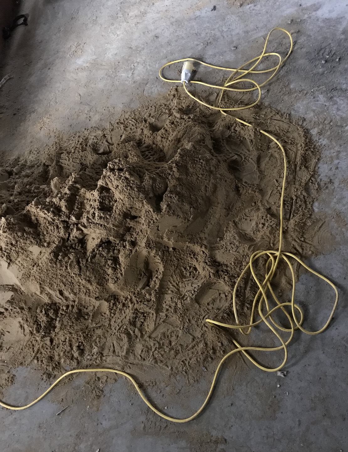 On the first floor, there was some real progress in the bathroom plumbing. These are the pipes for the sink and bath. And there has always to be a pile of sand for the brickworks somewhere!