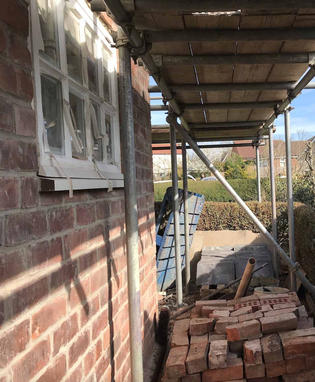 With the scaffolding up, the builders were able to work on the brickworks and grinding out of old mortar higher up the building. This was quite a painstaking process but the freshly pointed areas were looking great! Here’s a look at one of those beautiful window arches again with the alternating cream and terracotta bricks. One of them actually needed to be re-built altogether, which didn’t look like an easy task!