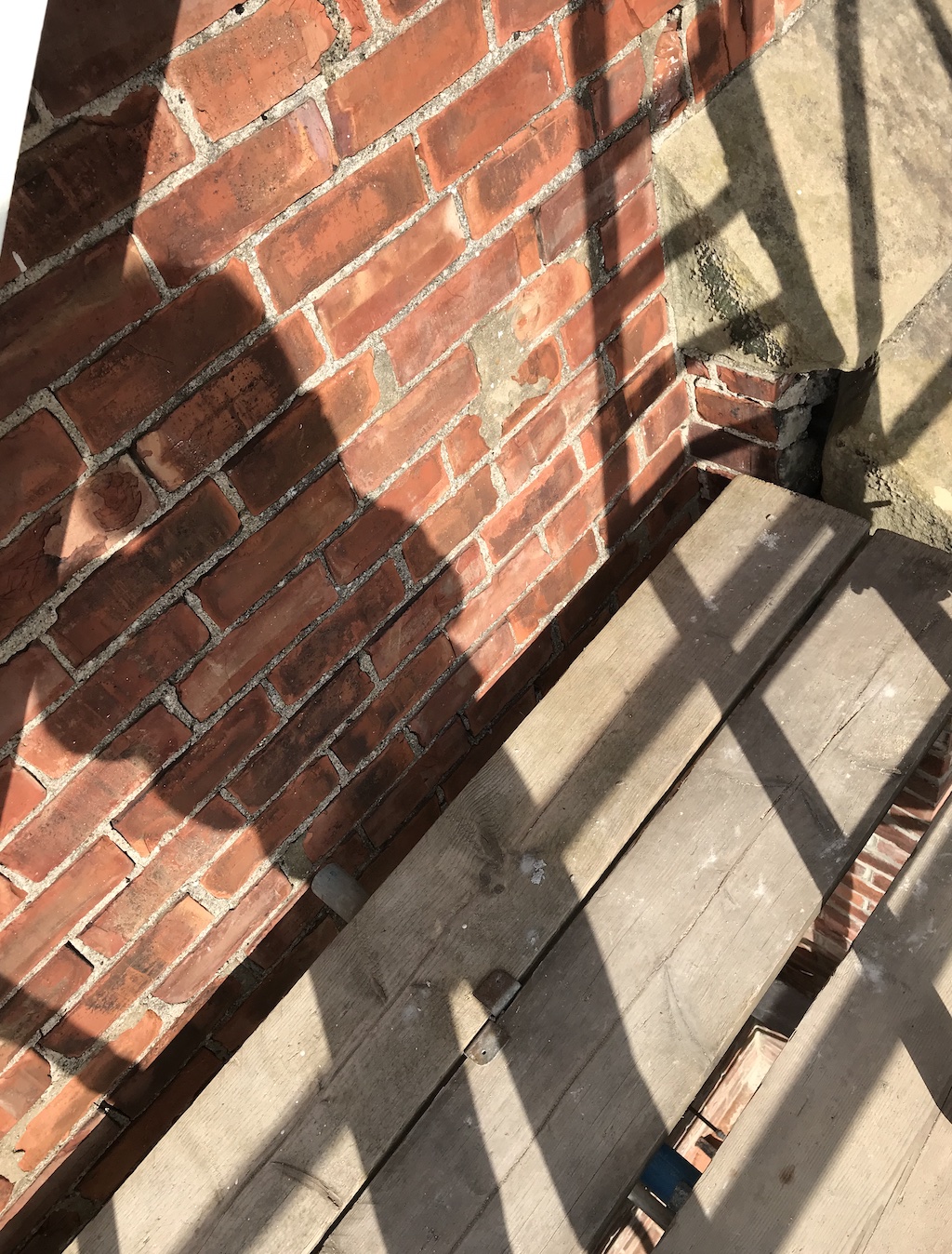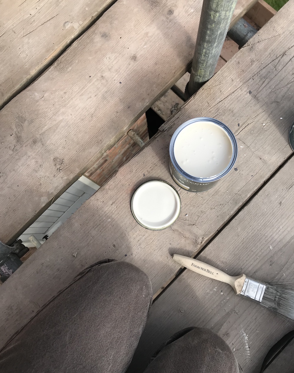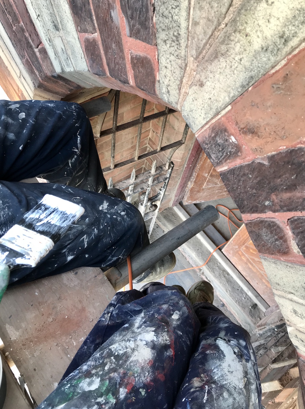 Next up was a very tricky paint job. I am laid down on the scaffolding as I attempted to reach underneath the roof slates to the woodworks that were only marginally visible from ground level! A small detail, but I know I’d notice it all the time if we ignored this step. It would also help to protect the wood too. We painted it black as it’s close to where the new guttering will be installed. I was aching quite a bit the next day after all that twisting and turning!